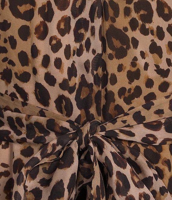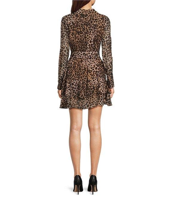 Marella Fabio Viscose Animal Print Point Collar V-Neck Long Sleeve Belted Mini Dress