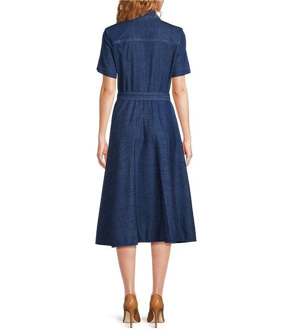 Marella Fagotto Denim Point Collar Short Sleeve Midi Dress
