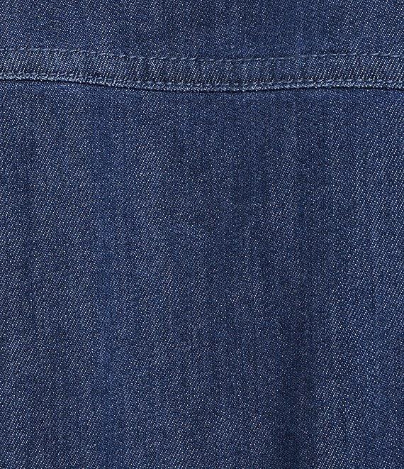 From Marella, this dress features: Denim fabrication Point shirt collar Short sleeves Slim-fit bodice and circle skirt Patch breast pockets In-seam pockets Branded metal button front closure Pure cotton Dry clean Imported.
