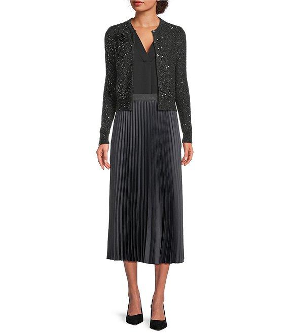 Marella Pontiac Plisse Pleated Elastic Waist Flared Midi Skirt