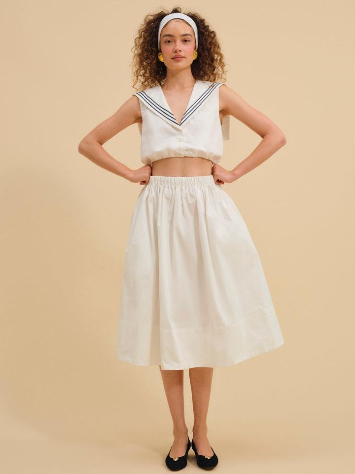 Marella Poplin Sailor Top — White