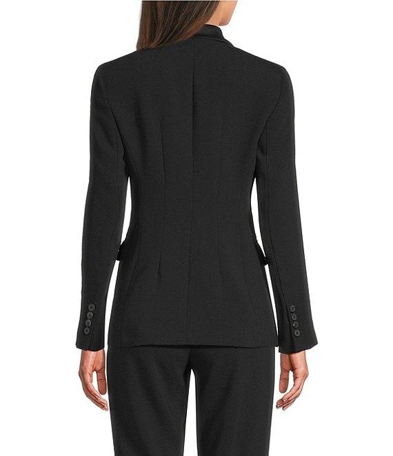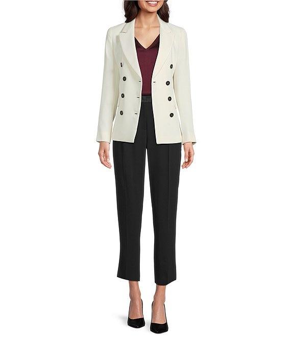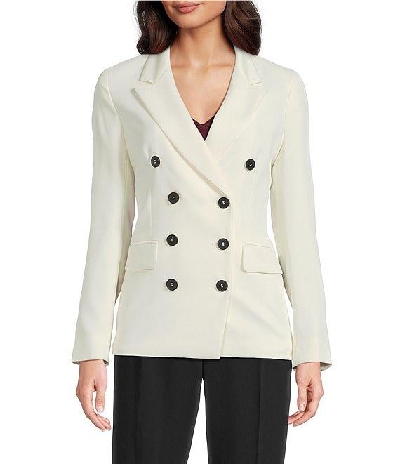 From Marella, this blazer features: Woven fabrication Double breasted silhouette Satin collar lapel neckline Long sleeves Front flap welt pockets Straight hem Button front closure Polyester; lining: acetate/polyester Dry clean Imported.