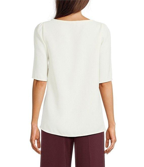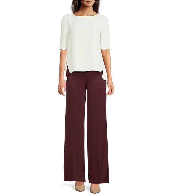 From Marella, this top features: Satin crepe fabrication Round neckline Bust darts Elbow sleeves Small gather at sleeves High-low hem with side slits Pullover construction Polyester Machine wash Imported.