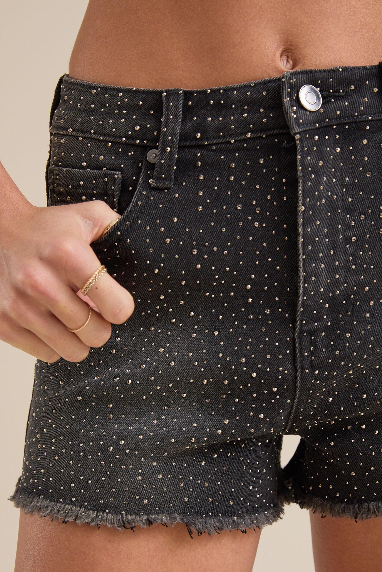 Rhinestone Riff Black Wash Embellished Denim Shorts FINAL SALE