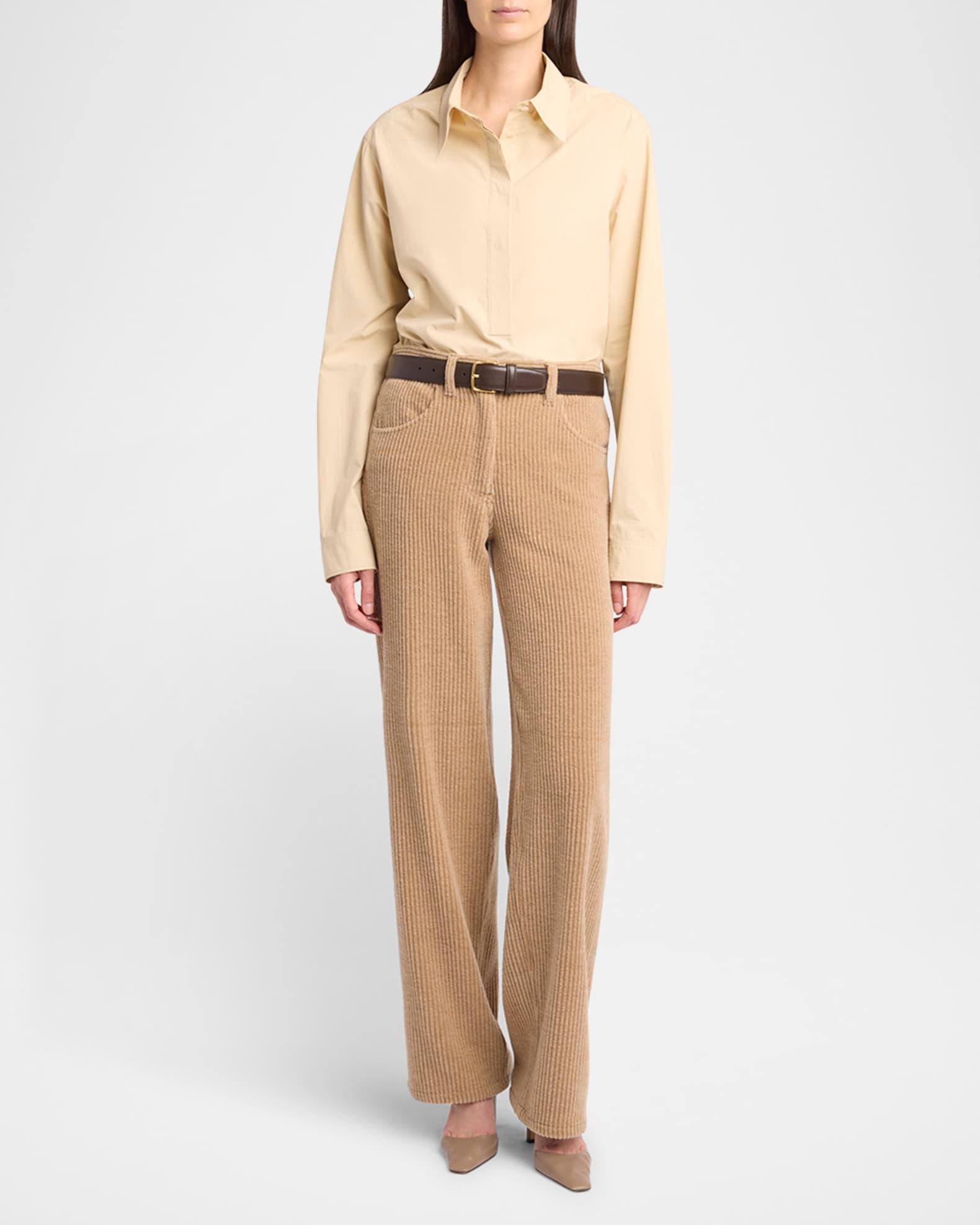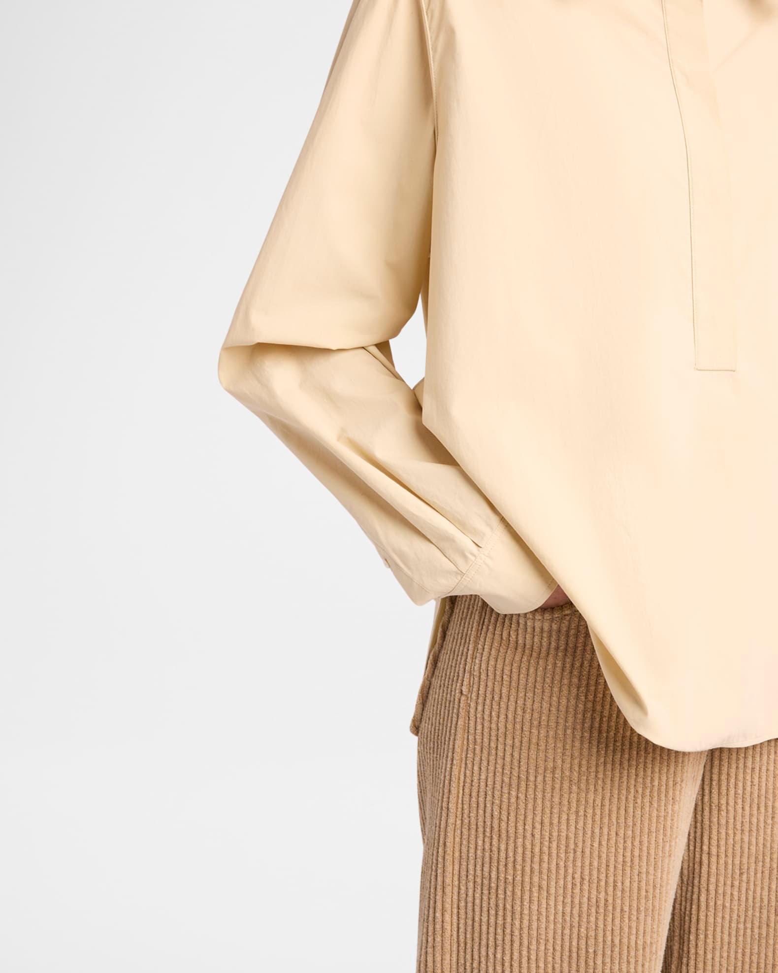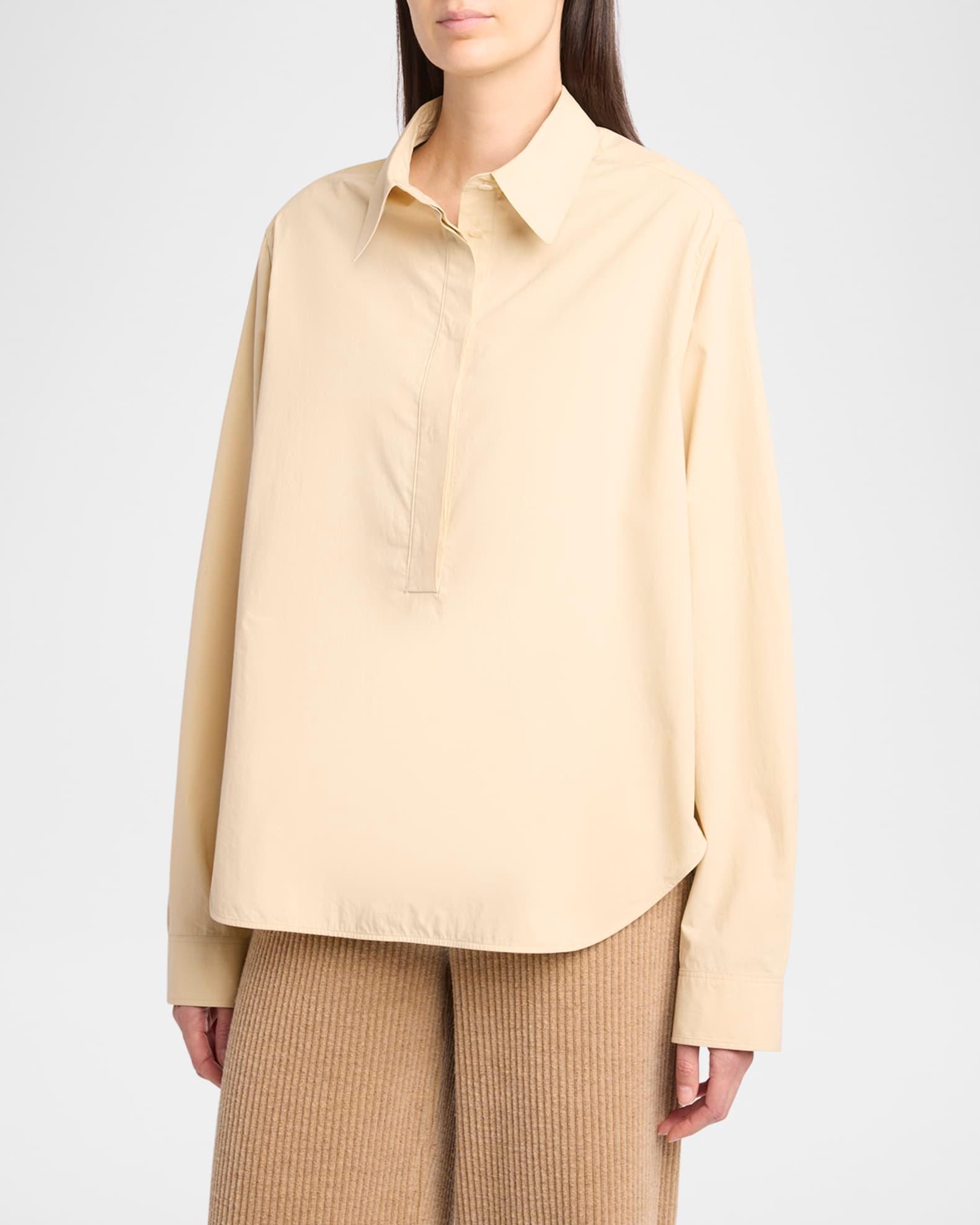 THE ROW "Margan" shirt in cotton poplin Point collar; quarter button front Long sleeves; button cuffs Yoked back; double pleats Loose fit Shirttail hem Cotton Made in Italy