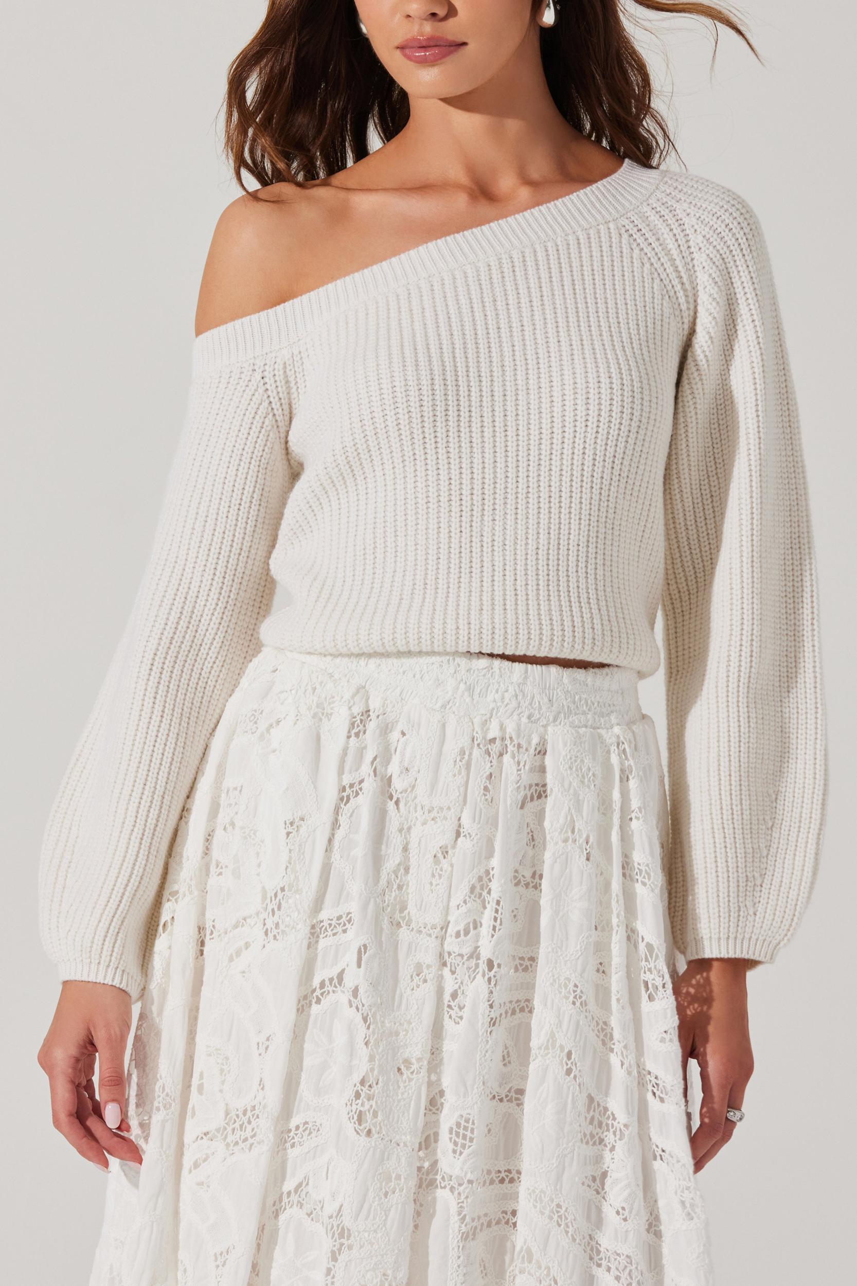 The Margaret is a one shoulder easy sweater that can be paired with denim, faux leather pants or a fun skirt.