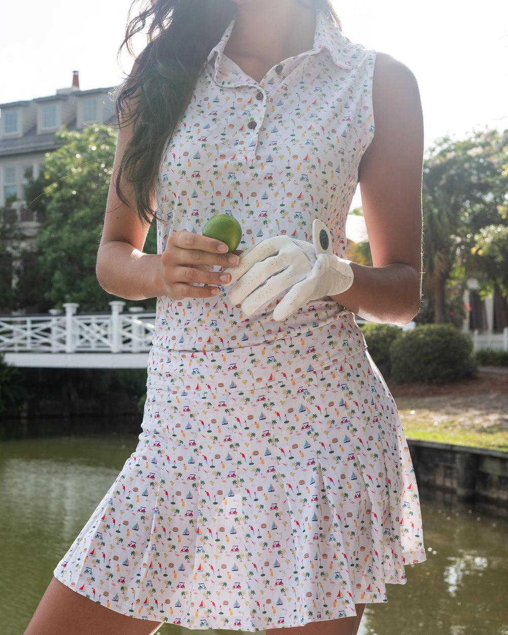 From tee time to post-round cocktails at the clubhouse, the soft, UPF-50 fabric, the flattering fit, and lightweight feel of this ladies golf tank keeps you cool and confident all day long. Pair (or Par) it with the matching skort and feel like you’re always one step away from a salt-rimmed margarita.