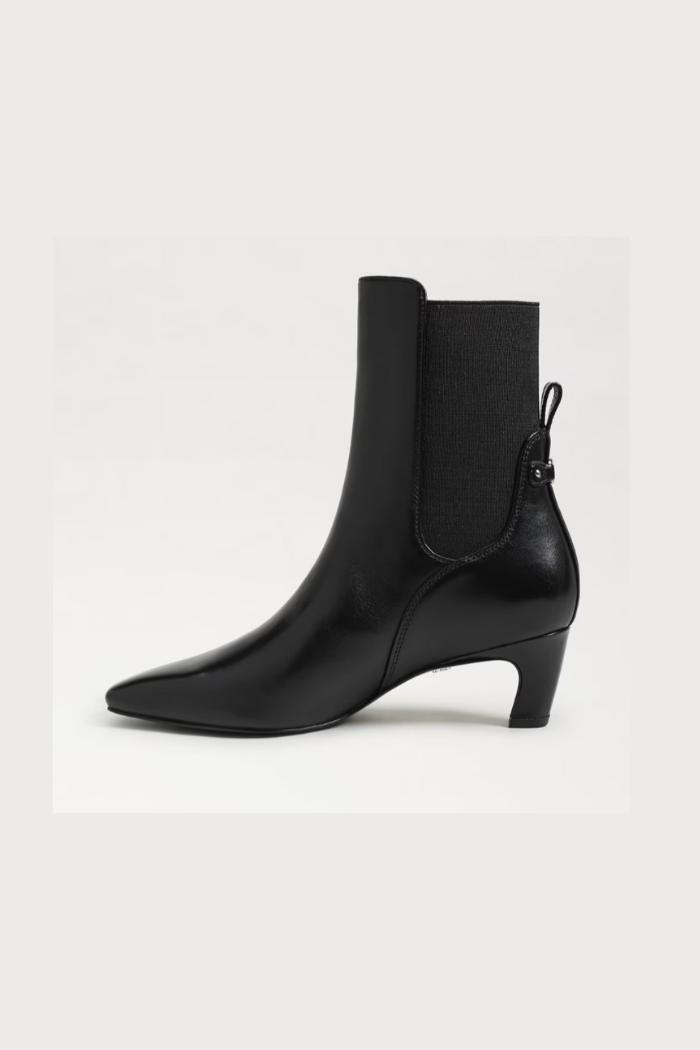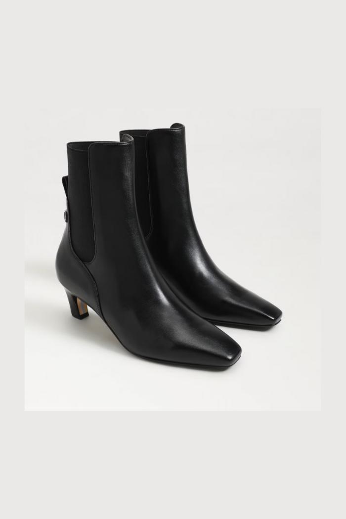 The Margo bootie is sophisticated and snappy featuring an elastic gore and sculpted heel. For a elevated touch, style Margo with a flowy skirt and structured blazer.
