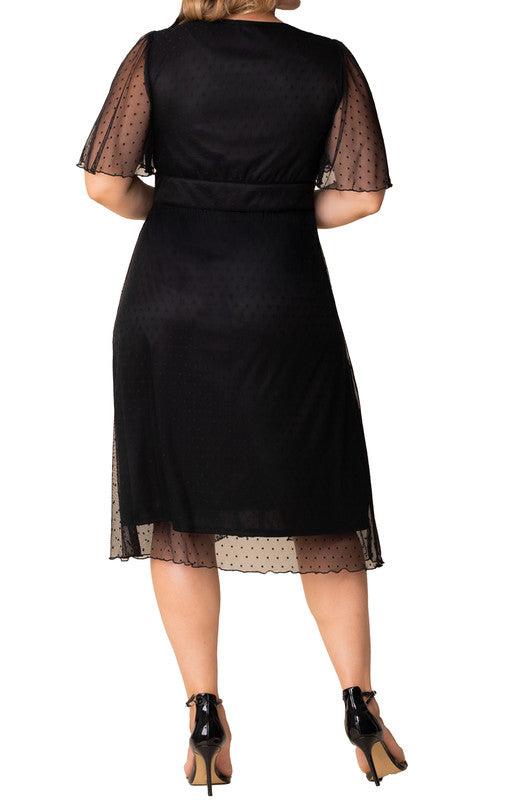 Effortlessly elegant, the Plus Size Margot Mesh Midi Cocktail Dress is a must-have for any occasion. This knee-length A-line dress features a flattering surplice neckline and delicate flutter sleeves for a feminine touch. The elastic waistband enhances your curves while ensuring all-day comfort.