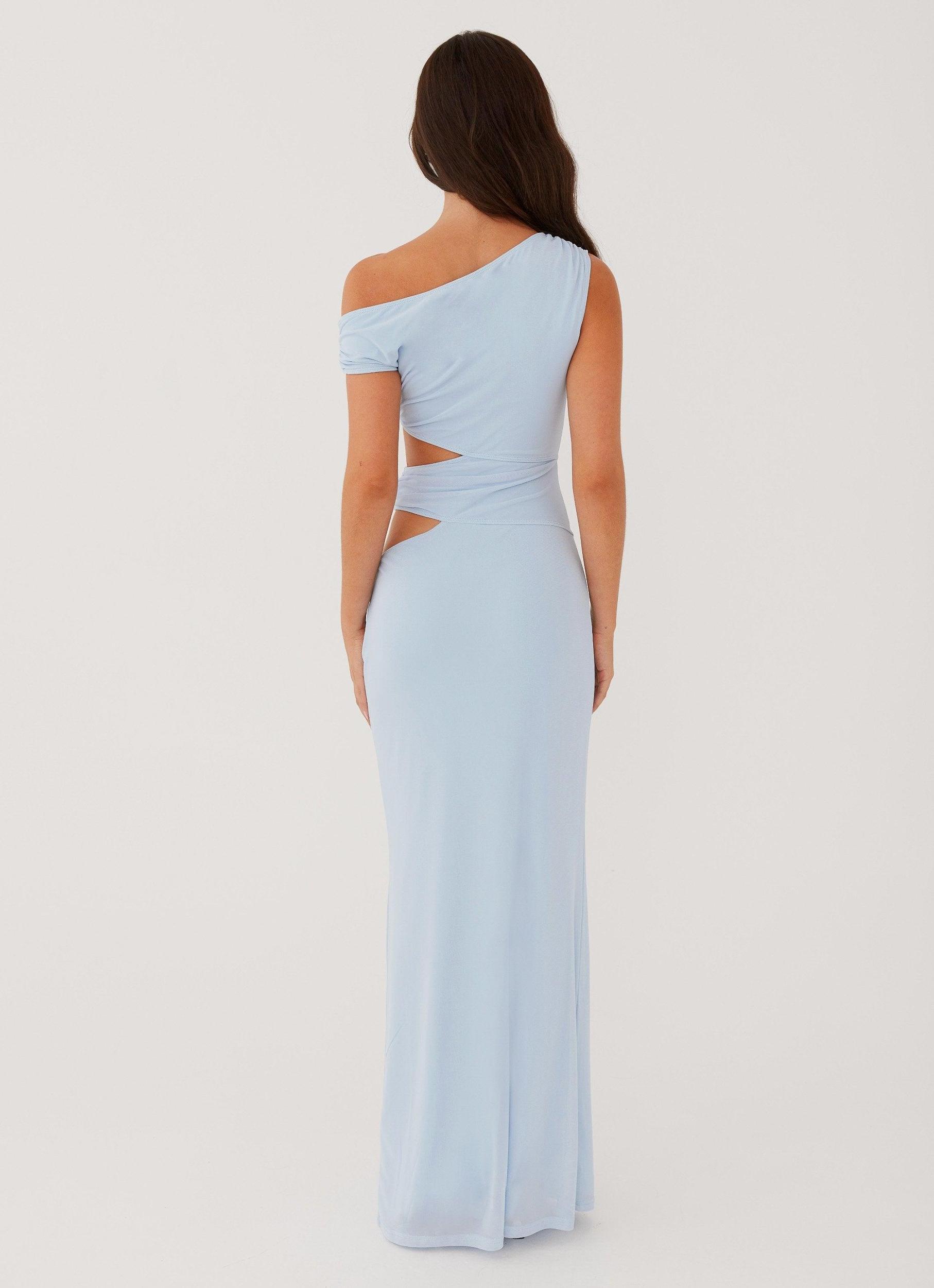 Peppermayo Exclusive Elevate your evening with our Margot One Shoulder Maxi Dress. Crafted from luxurious mesh fabric, this captivating dress boasts a chic one-shoulder design and cut-out detail, ideal for embracing the enchanting ambiance of balmy nights and nightclub silhouettes. - Maxi dress- One shoulder- Fully lined- Cut out waist- Good stretch- Side split- 95% Polyester, 5% Spandex Size AU 8 / US 4 garment measurements: Length 147cmHip 86cmBust 70cmWaist 56cm Olivia wears size AU 8 / size US 4