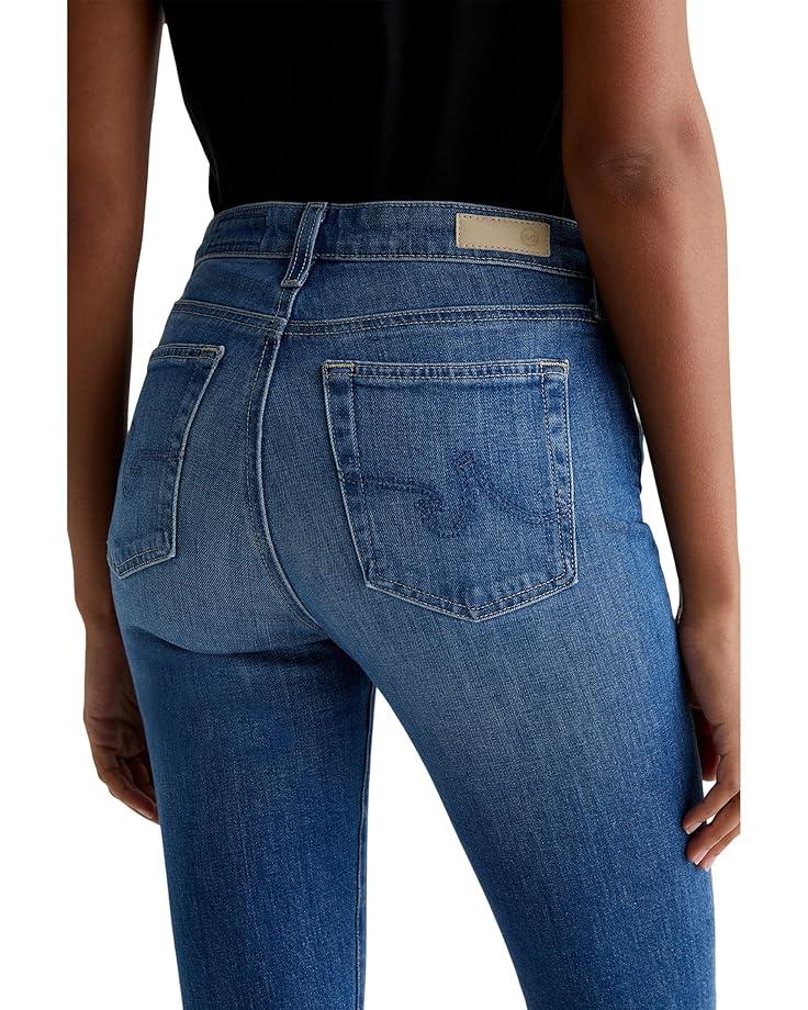 The AG® Jeans Mari Mid Rise Slim Straight Jeans in Runway offers a flattering mid-rise fit that is easy around the hips, straight-leg style, and subtle slim leg openings. The jeans have belt loops on the waist and a zip-fly and button closure to ensure a secure and flattering fit.