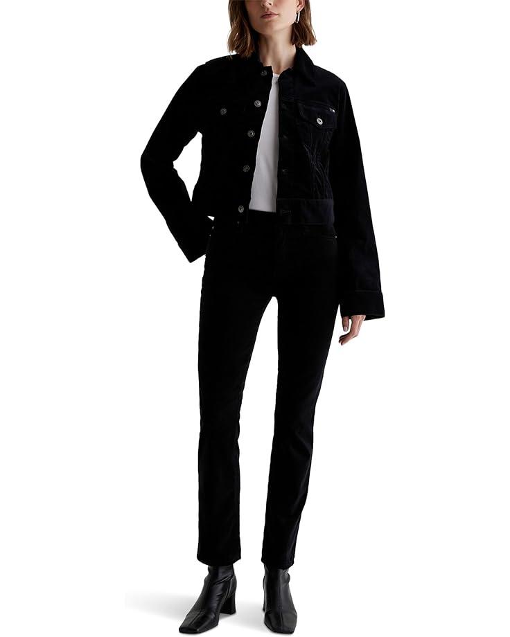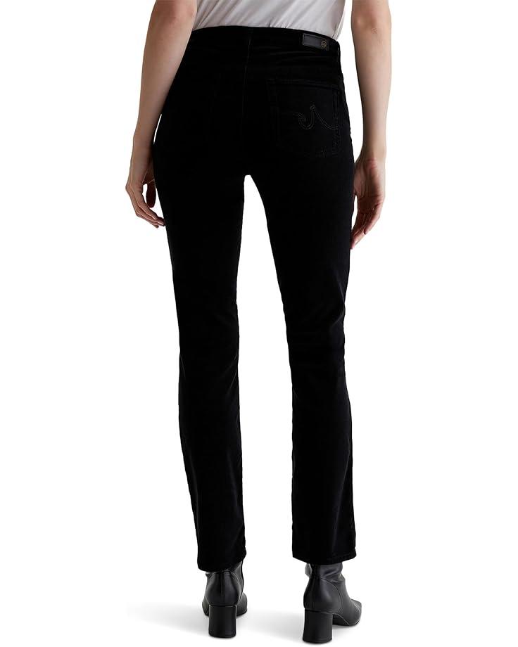 The AG® Jeans Mari Mid Rise Slim Straight Jeans in Super Black offers a flattering mid-rise silhouette that is easy around the hips with straight leg and subtle slim leg opening. The skinny fit bottomwear features a zip-fly and one-button closure with classic five-pocket construction.