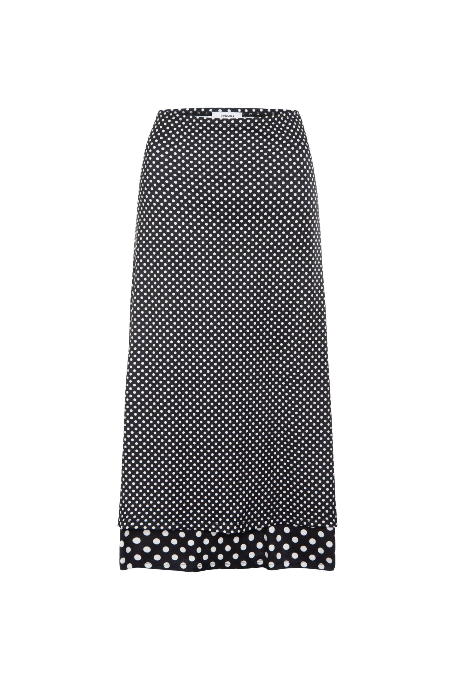 Our midi Maria Skirt returns in polka dot. She is debuting our newest fabric, slinky jersey, and a double layer design. Pair with the polka dot Mathilde or a corset.