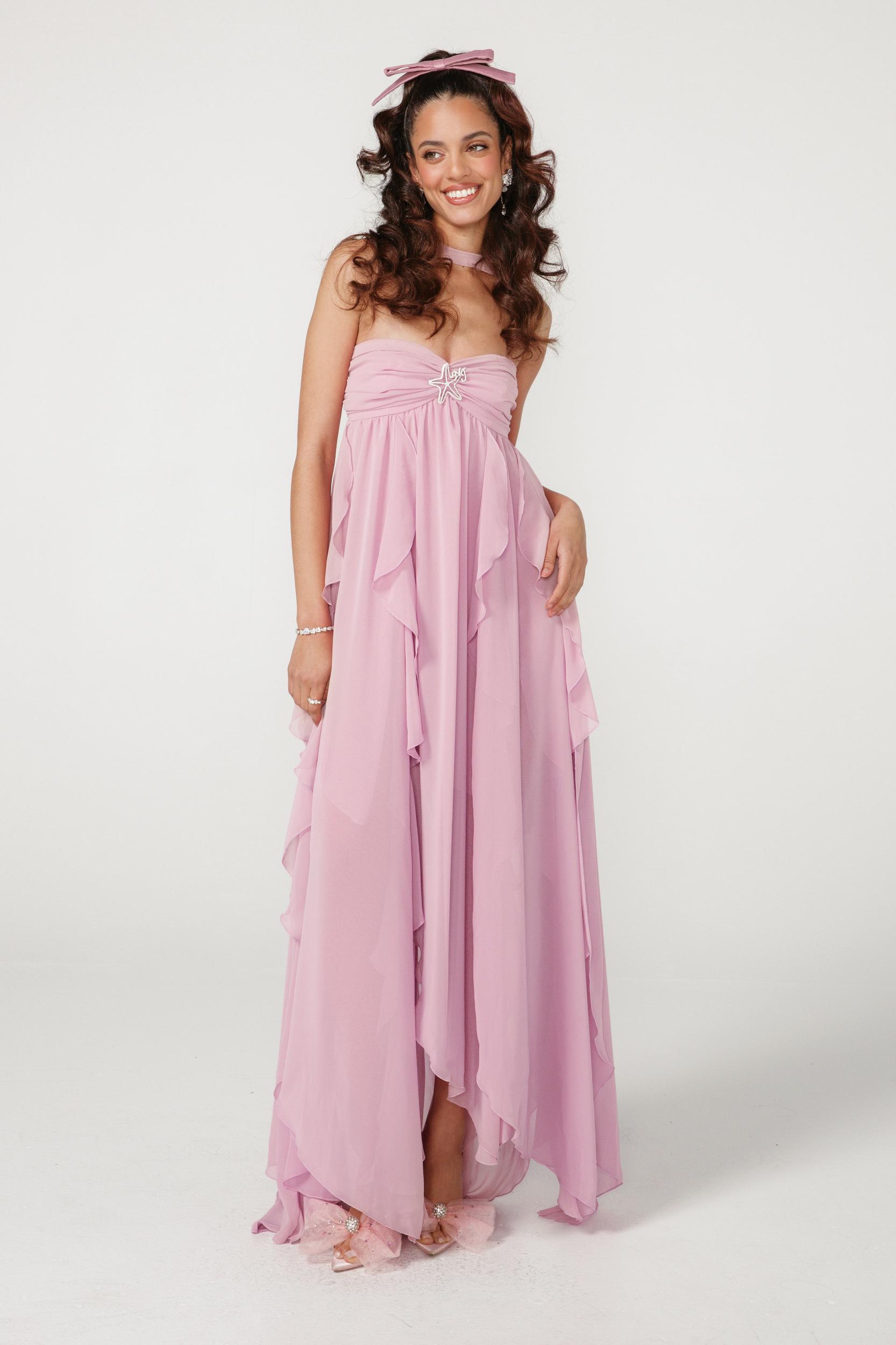 Channel romance and freedom in the Mariah Dress. This whimsical, backless dress features a haltered neck and long, lace skirt that can be found blowing in the wind. It's a perfect spring staple this season. Halter neck Backless Embellished diamond details Dry clean only