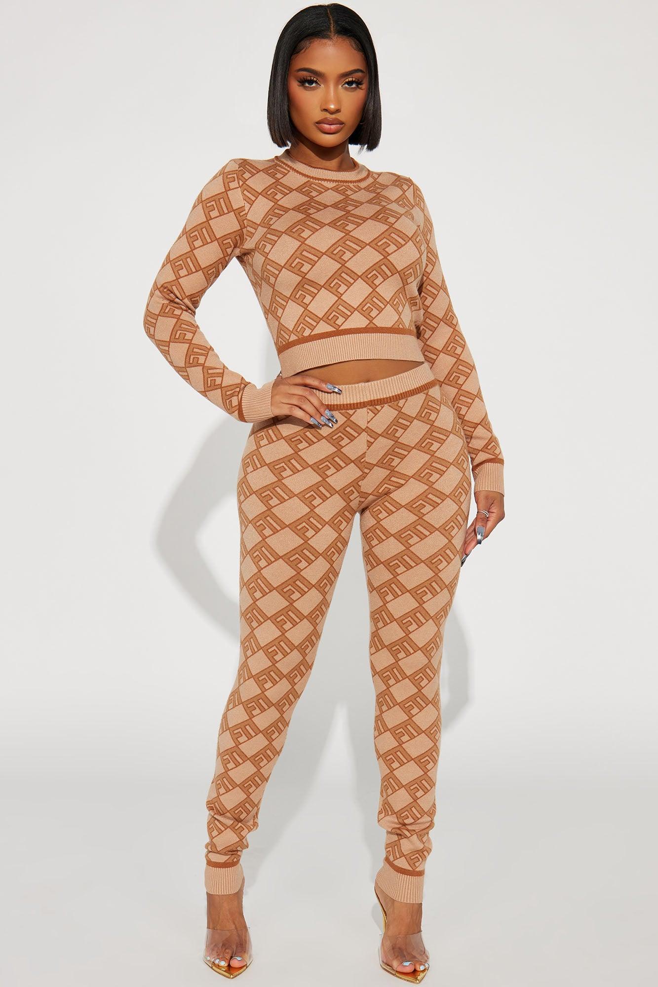 Available In Taupe/combo And Pink/combo. Sweater Legging Set Long Sleeve Leggings Elastic Waistband Stretch Disclaimer Pattern Placement May Vary 50% Rayon 30% Polyester 20% Nylon Imported