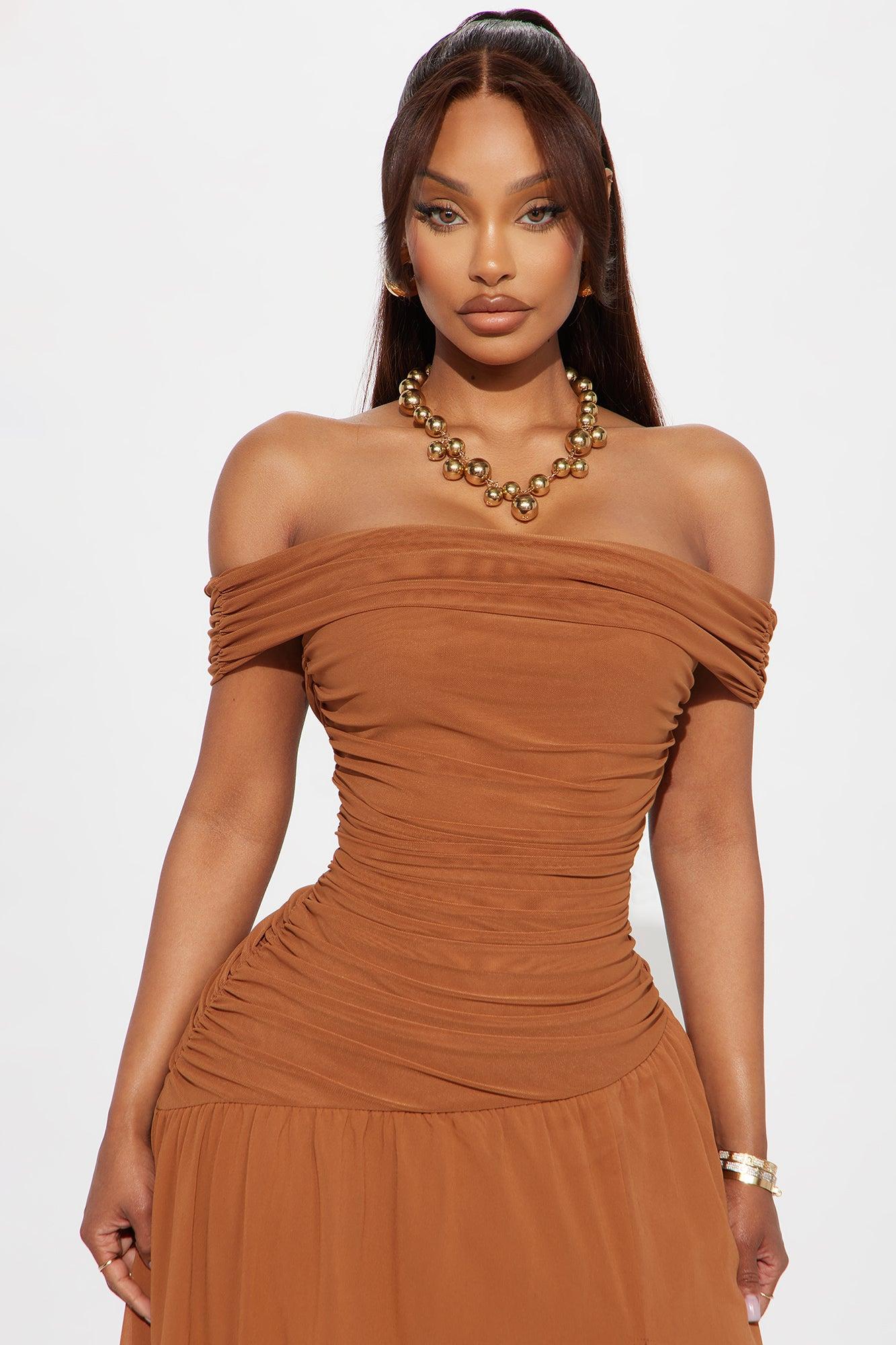 Mariella Mesh Maxi Dress - Mocha