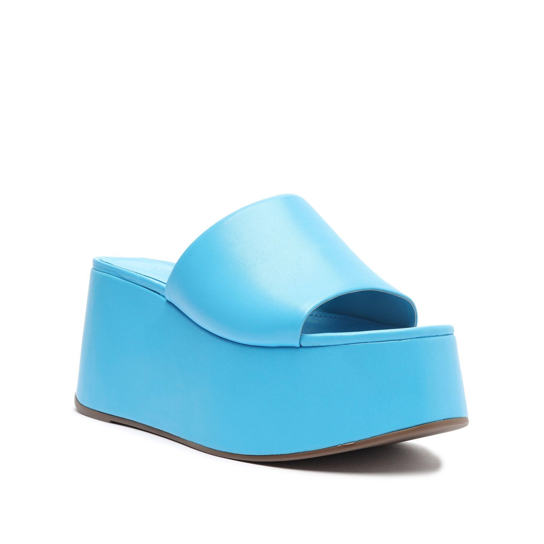 As if. Dress to the nineties in this sleek platform sandal, designed in smooth leather for a versatile and statement-making finish to denim and dresses. Material: Nappa Leather Slip-on platform sandal Round open toe Heel height: 3.6in | 90mm SKU: S2110400010007