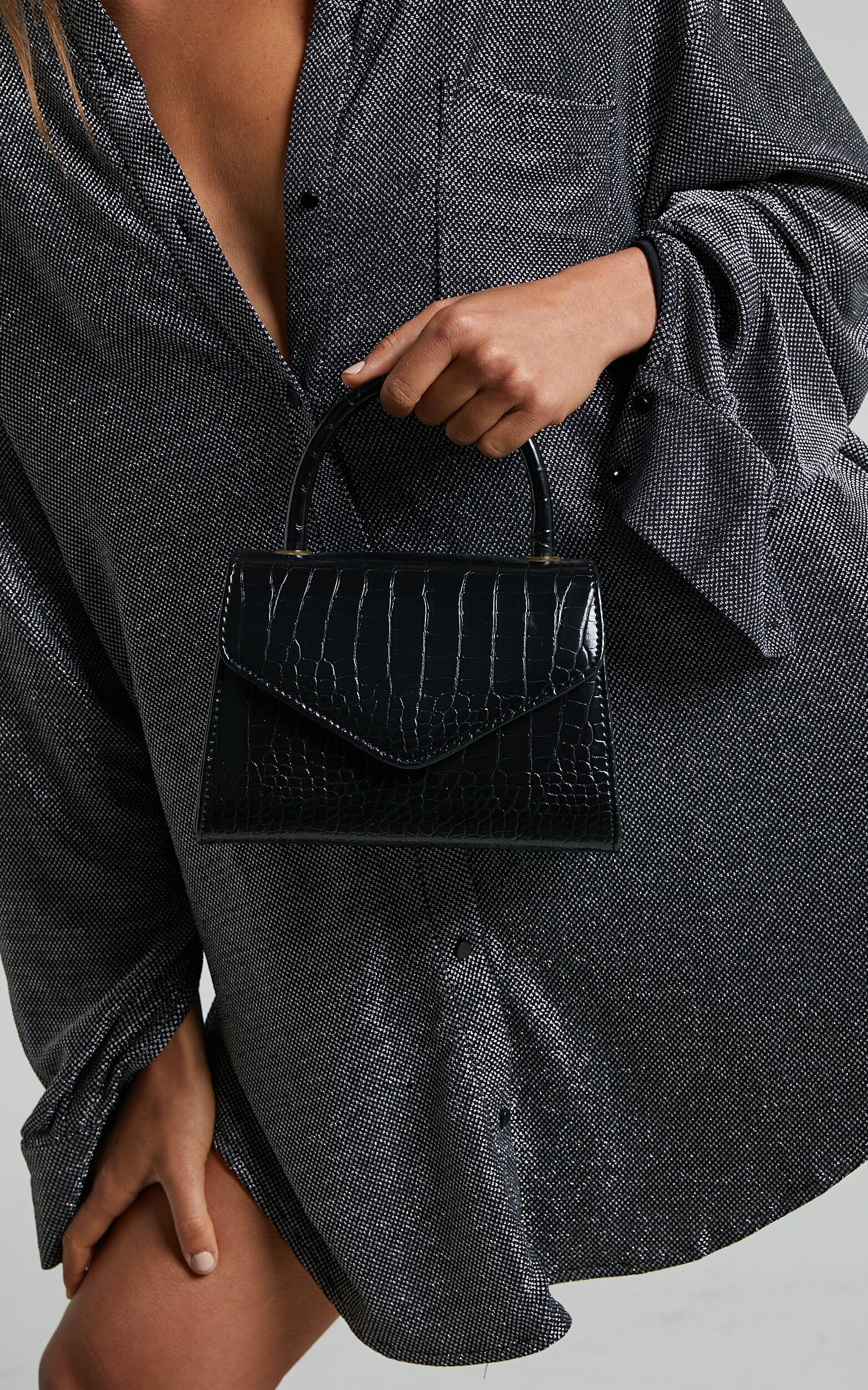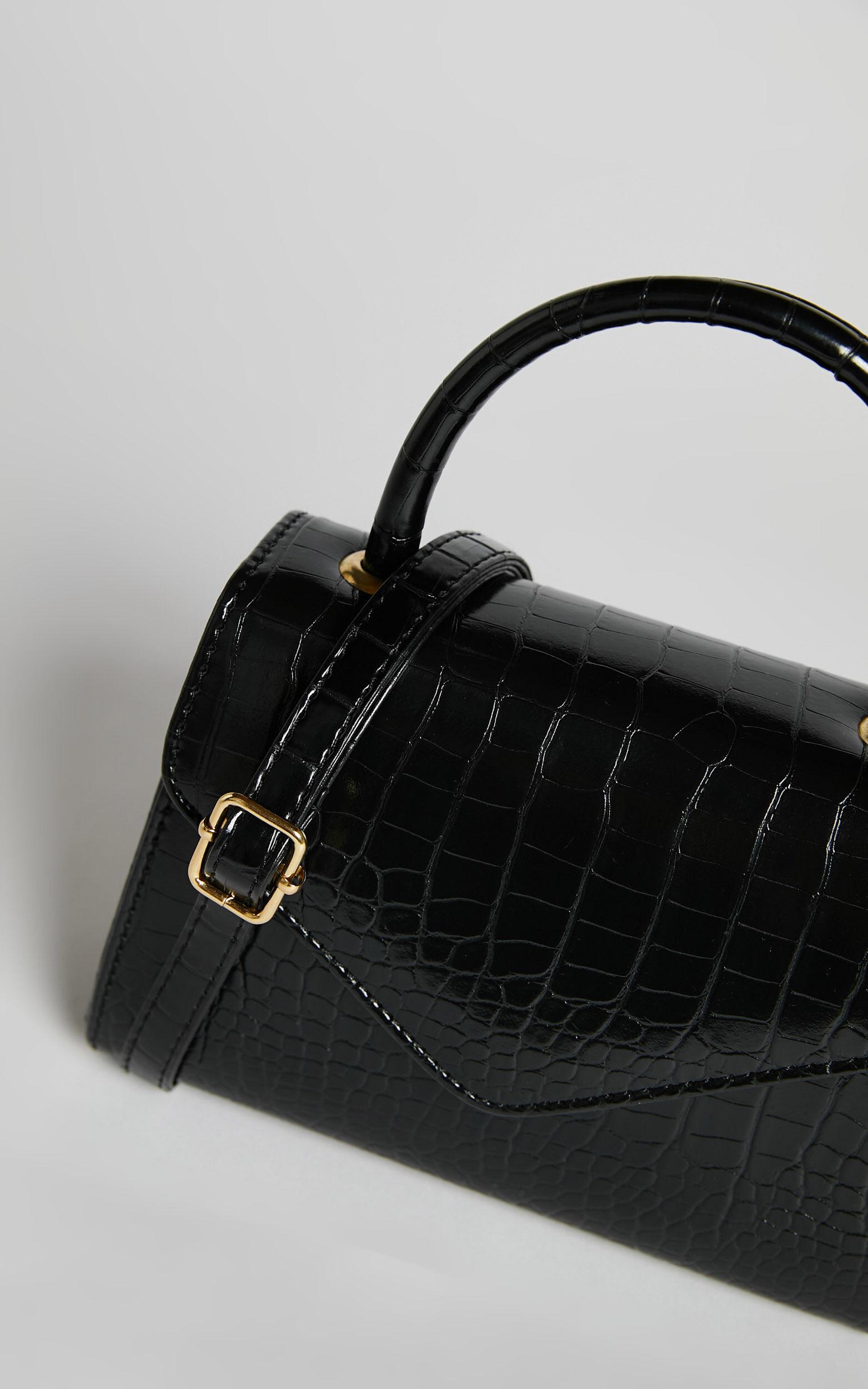 Marilou Bag - Croc Embossed Top Handle Crossbody Bag in Black