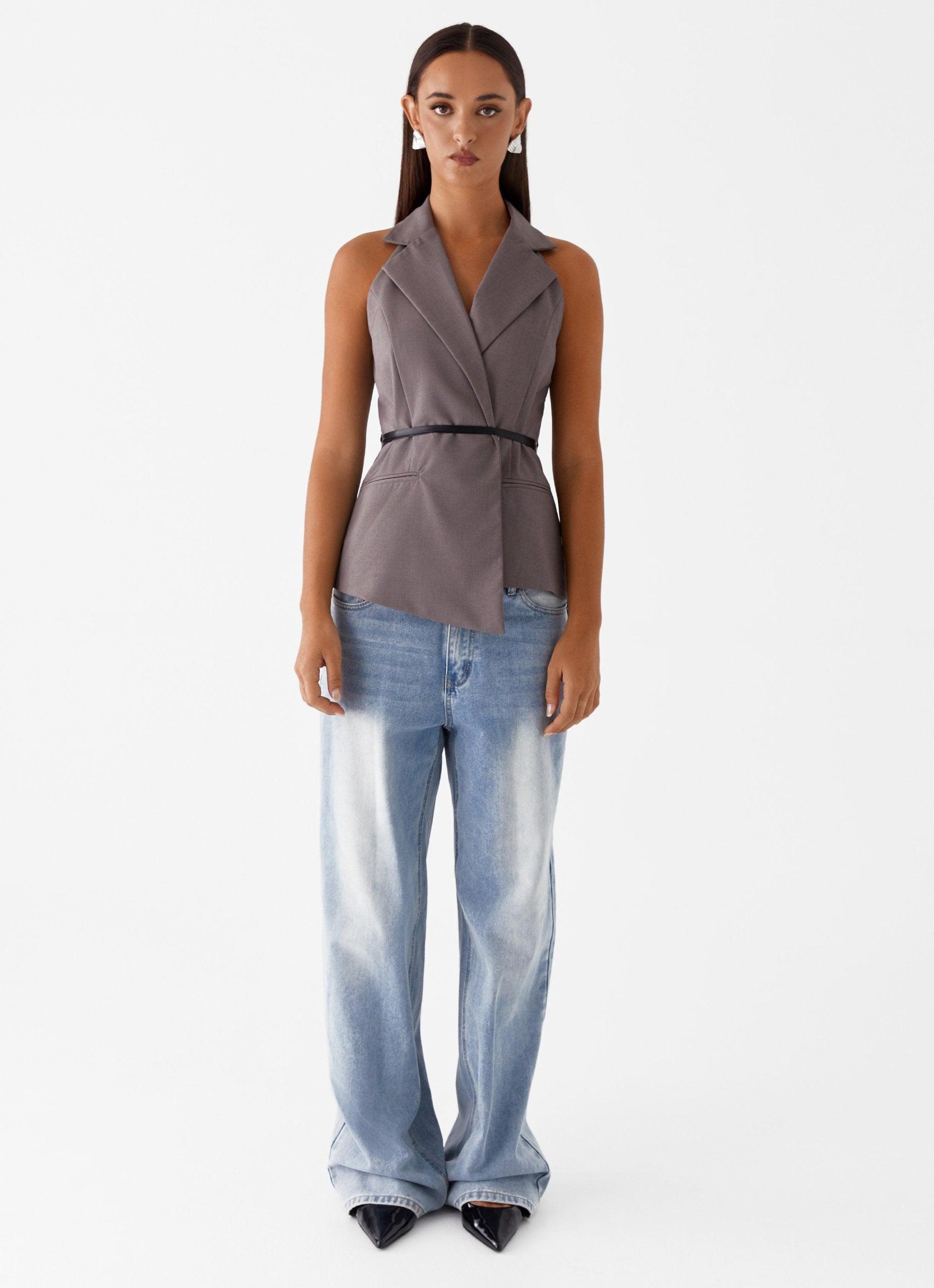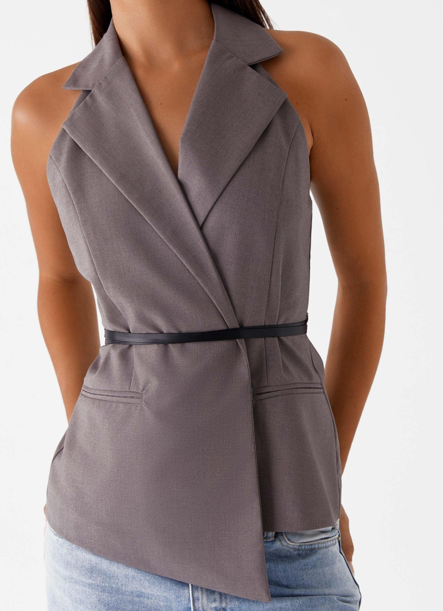 Peppermayo Exclusive Introducing the Marina Blazer Top – featuring a chic V neckline and a sophisticated double collar. Fully lined for a sleek finish, this top seamlessly blends elegance with modern flair, making it a standout choice for both professional and stylish evenings. - Double Collar- V Neckline- Front Metal Clip Button- Fully Lined- Waist Belt Loop and Belt- Front Twin Jet Pockets- 55% Rayon, 45% Polyester- Lining: 97% Tencel, 3% Spandex Size AU 8 / US 4 garment measurements: Bust: 80 cm / 31.5 inWaist: 80 cm / 31.5 inHem: 102 cm / 40.2 inLength: 59 cm / 23.2 in Roberta is 177cm and wears size AU 6 / size US 2