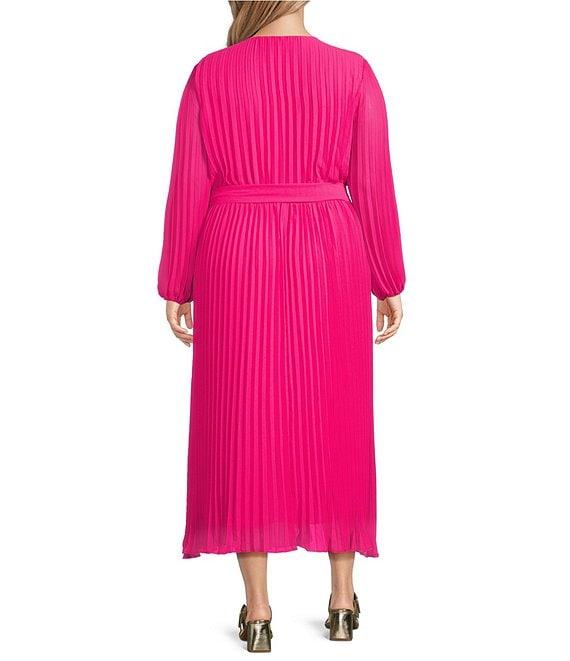 Marina Plus Size Long Sleeve Pleated Dress