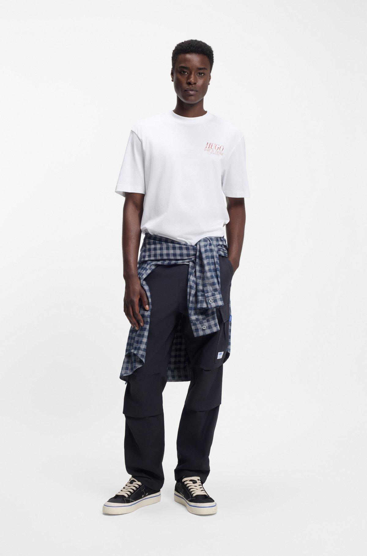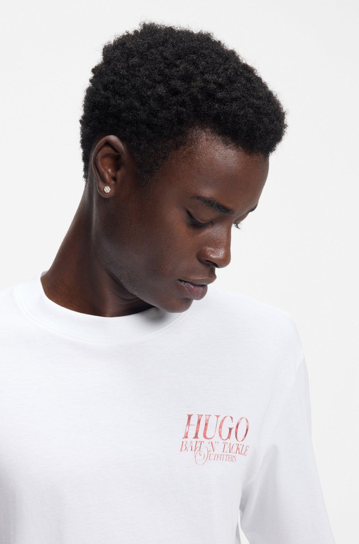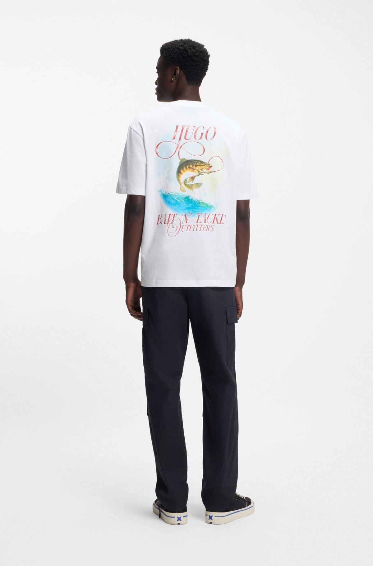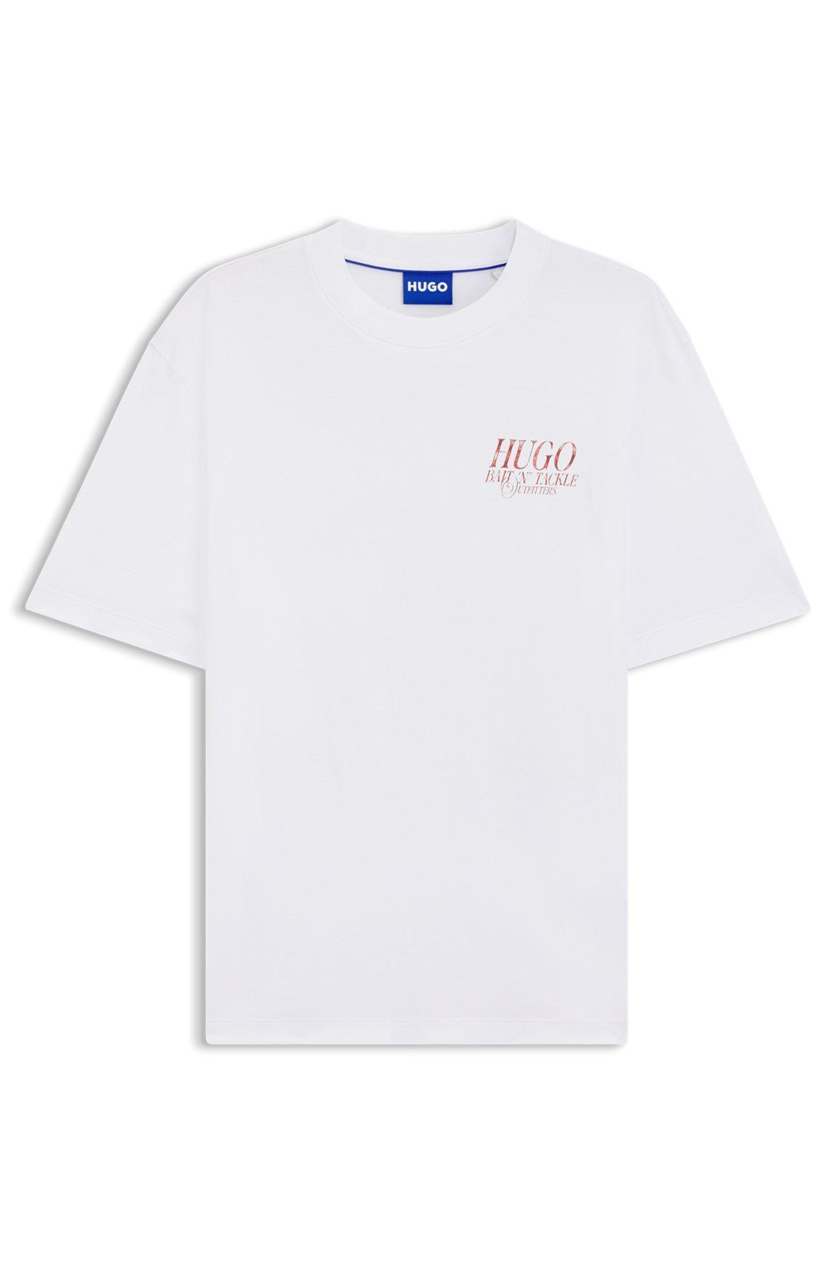 Add impact to casual looks with the marine-themed artwork of this HUGO Menswear T-shirt. Breathable cotton. Easy straight fit.
