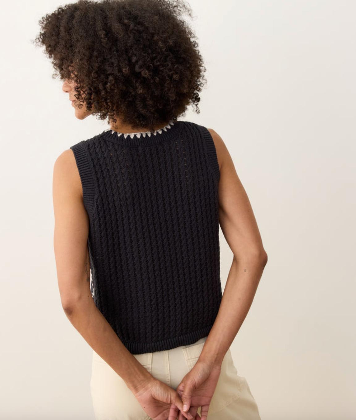 The Marine Layer Clara Sweater Tank redefines simplicity with thoughtful details. Crafted from warm, soft knit fabric, it offers cozy comfort while the contrast tipping adds a refined touch. Its relaxed fit and side slit ensure effortless wearability, making it a versatile piece that elevates any outfit with ease.