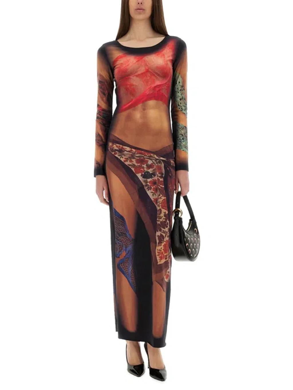 Shop Marine Serre Multicolor Long Dress With All-over Graphic Print In Tech Fabric Woman In Beige from 800+ stores, starting at $377. A stunning ankle-length dress from Marine Serre, designed with an artistic all-over graphic print that brings vibrancy to any occasion. The dress features a round neck and long sleeves, crafted from innovative tech fabric that molds to the body, offering a slim fit. This piece embodies contemporary style, perfect for making a bold statement. Ankle-length design Artistic all-over graphic print Round neck Long sleeves Innovative tech fabric Slim fit