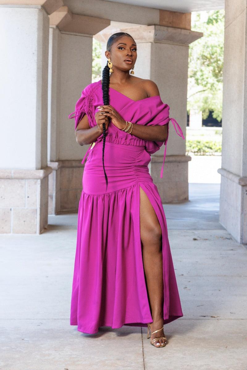 This front ruched maxi skirt features a playful ruffled bottom. With its curve-hugging design, you'll feel confident and stylish in any situation. For detailed measurements please refer to our size guide or email/Call -