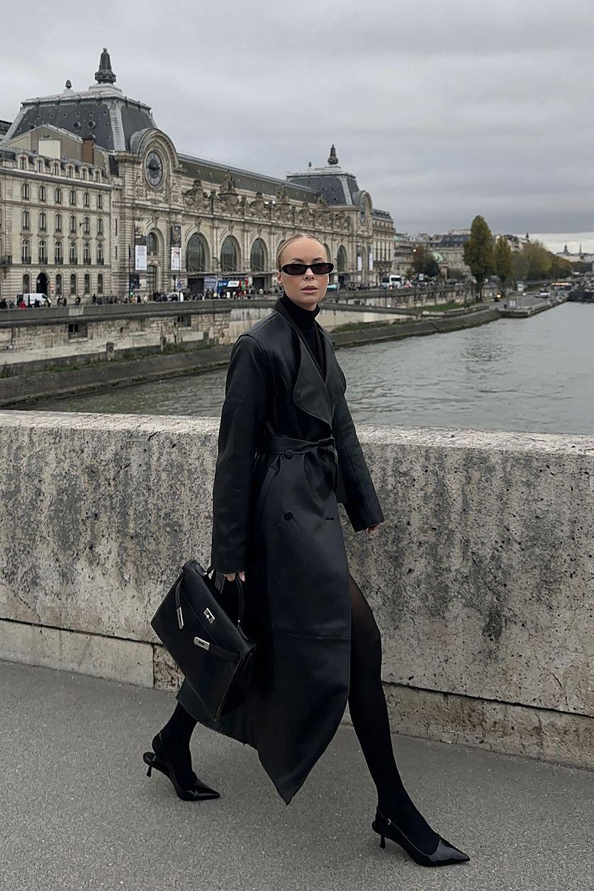 Avah Trench Coat - Double Breasted Tie Waist Coat in Charcoal
