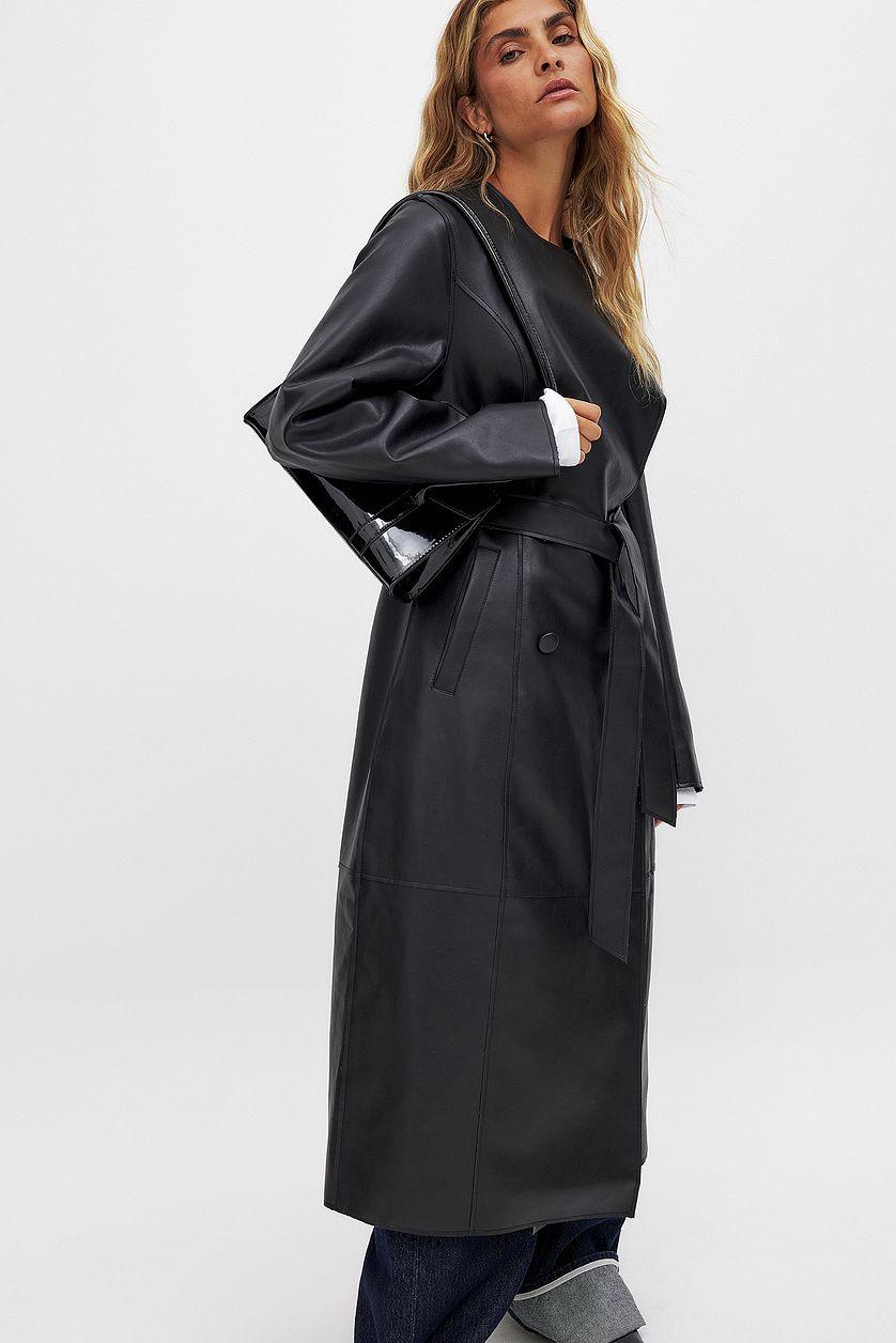 Marked Waist Pu Coat