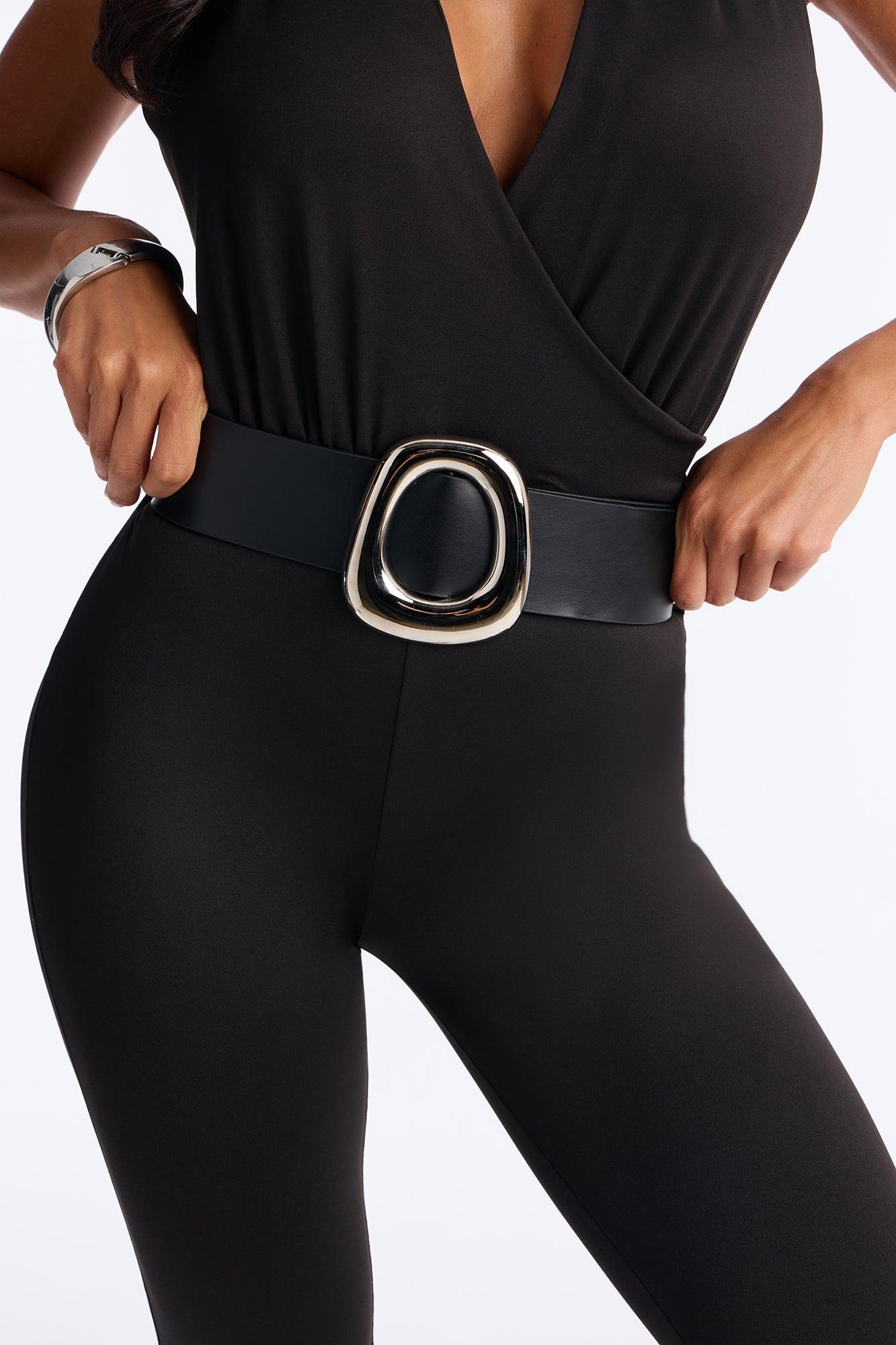 Marla Backless Belted Capri Catsuit - Black Female