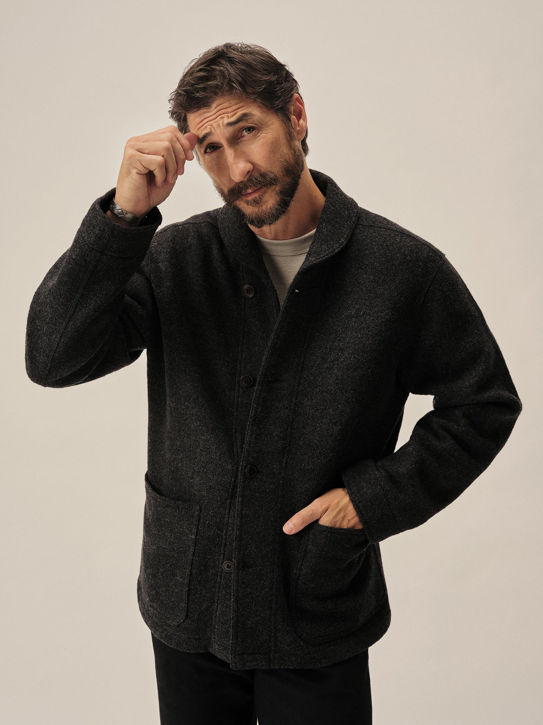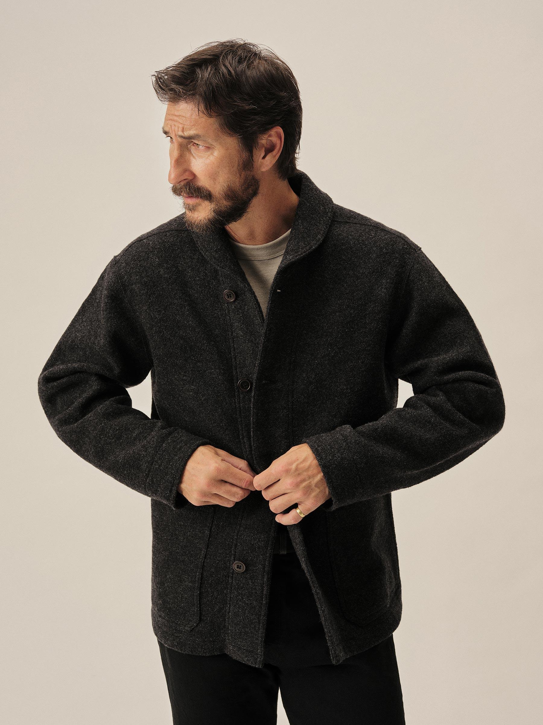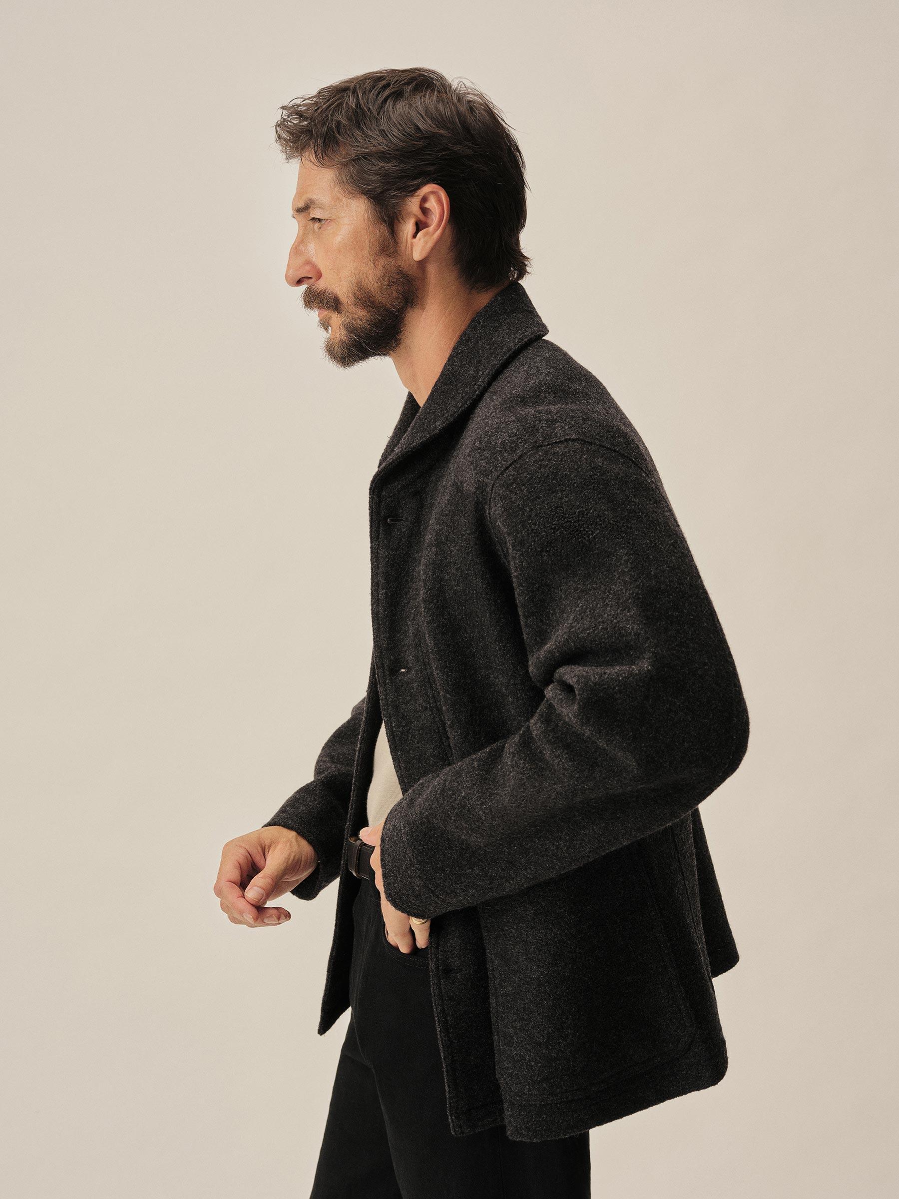 Marled Deep Charcoal Felted Shawl Coat