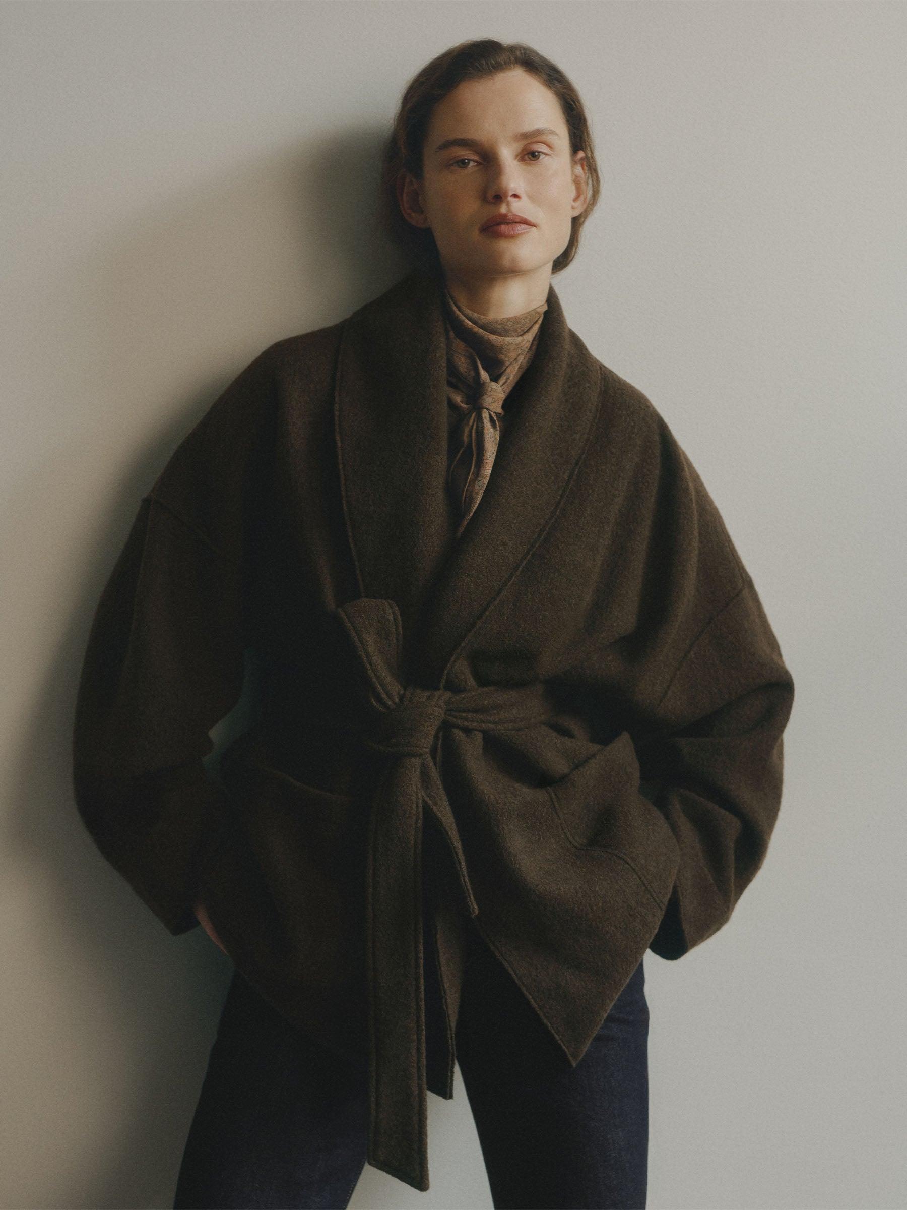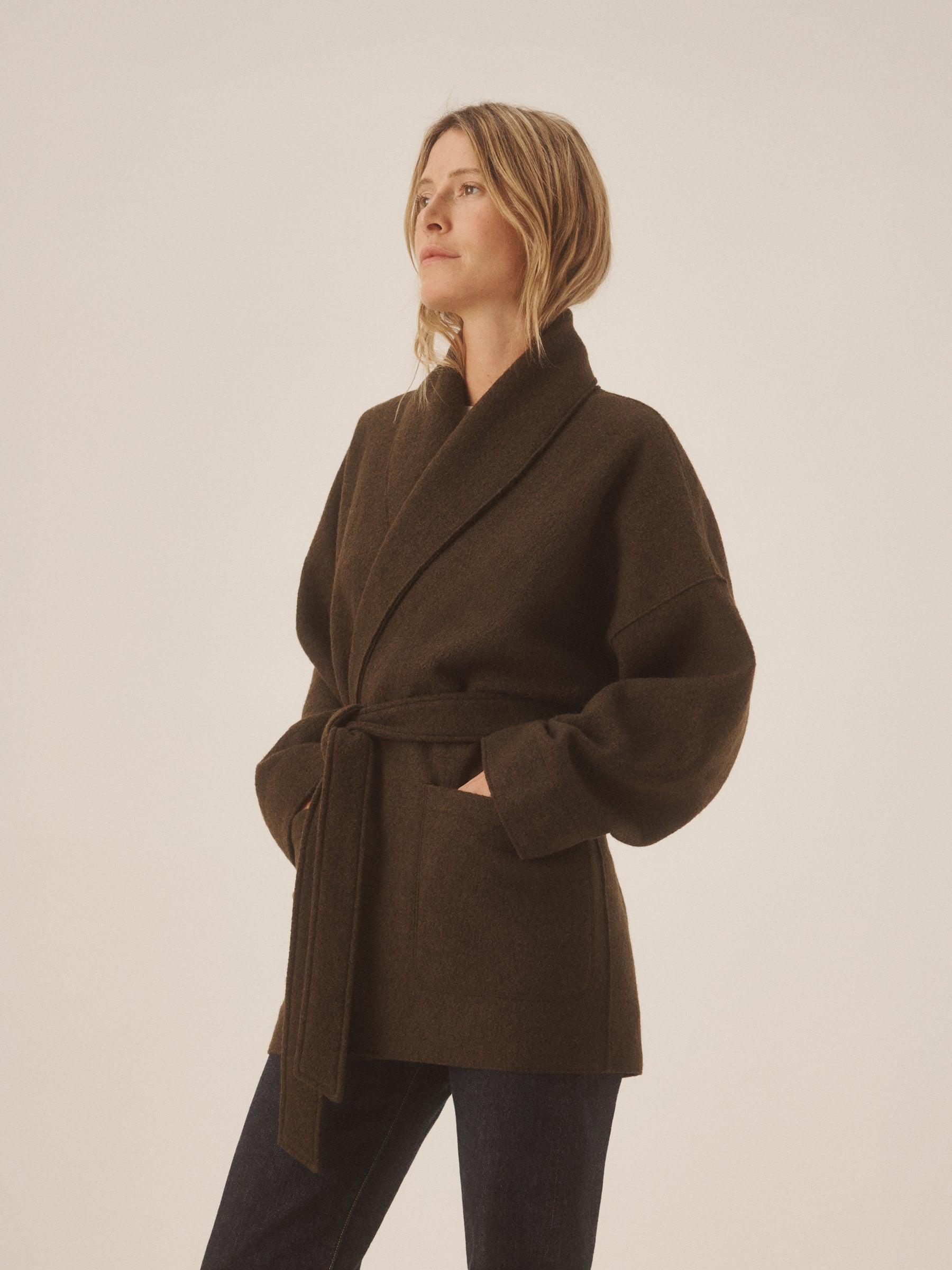 Marled River Rock Felted Wool Wrap Coat
