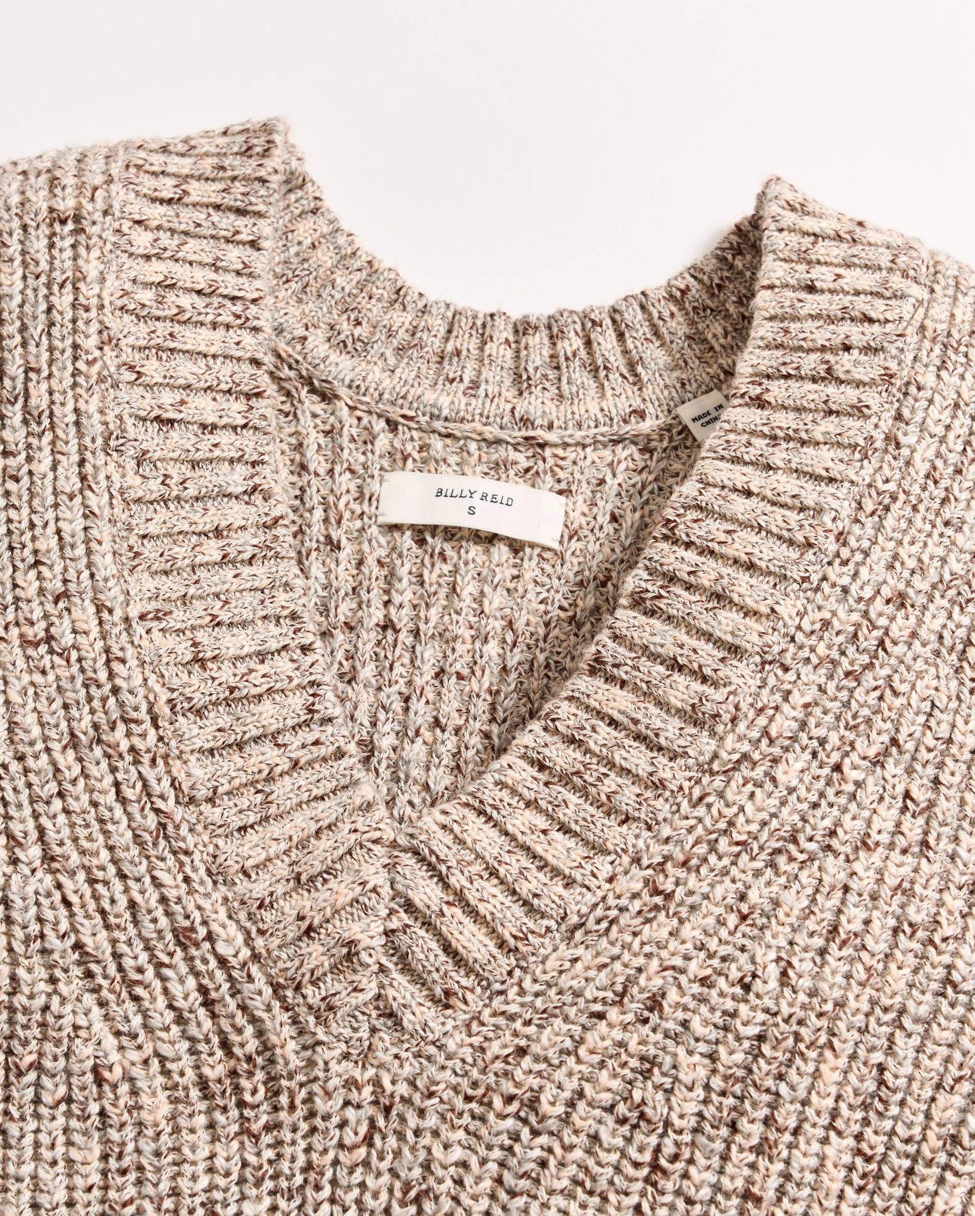 Our Marled V-Neck Shell Sweater is made with a unique texture that’s super soft to the touch and made in a neutral tone that works with everything. It has a bit of a cropped, shorter proportion, with a silhouette that falls at the high hip area. The slightly boxy frame looks great with the chunky, textural marled yarn