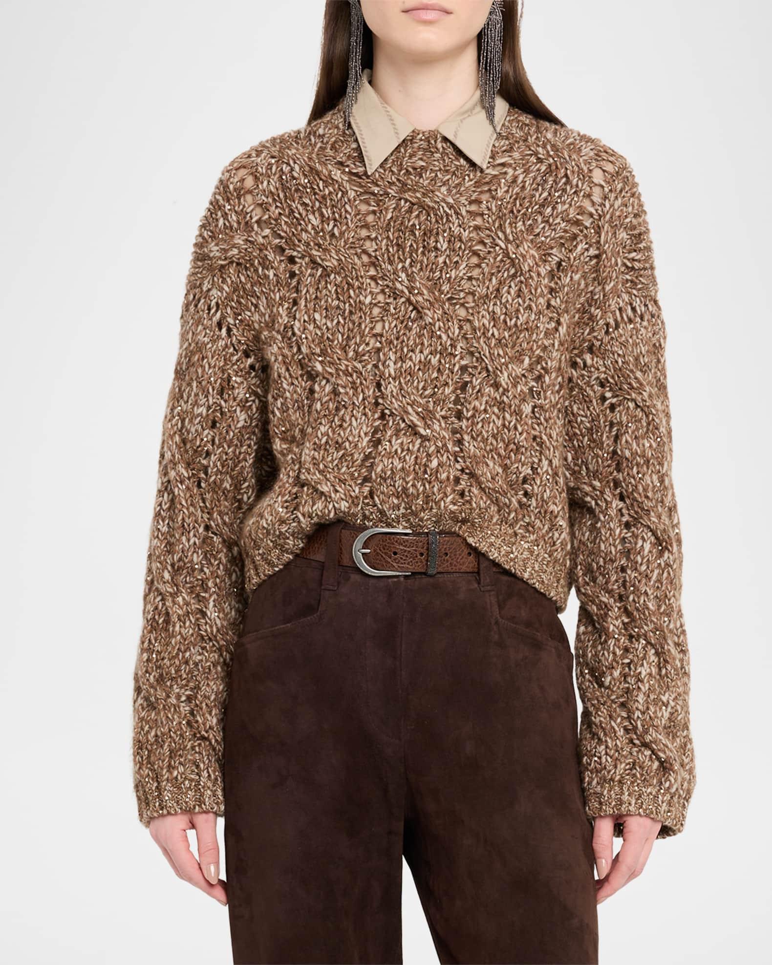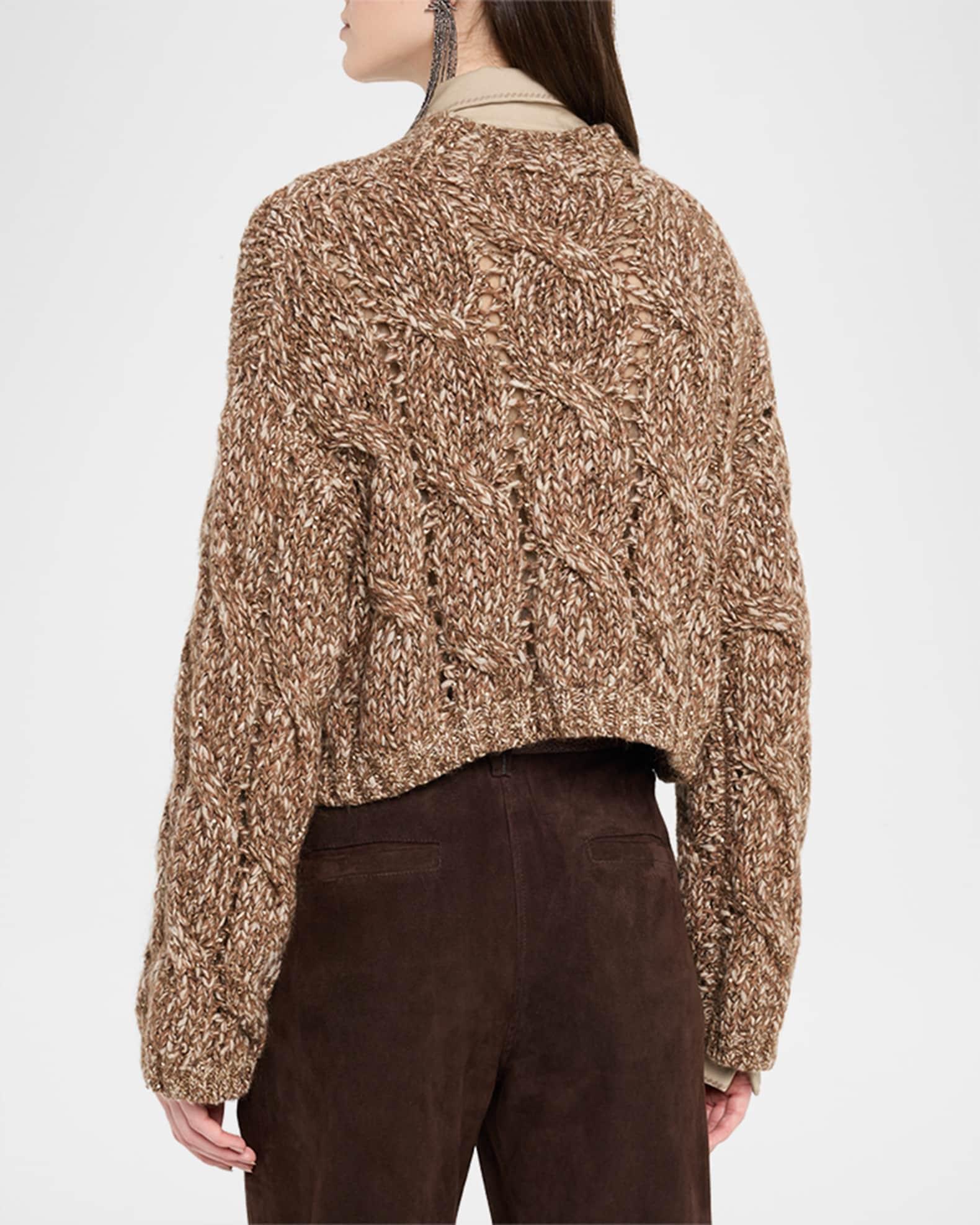 Marled Wool Mohair Sequined Cable-Knit Crop Sweater