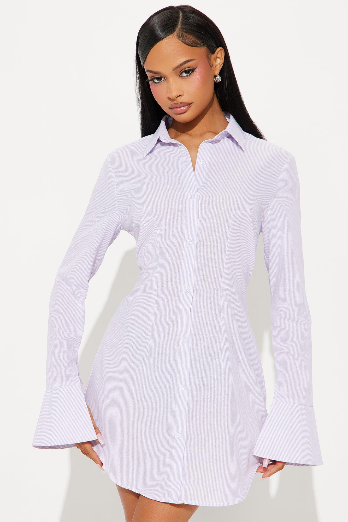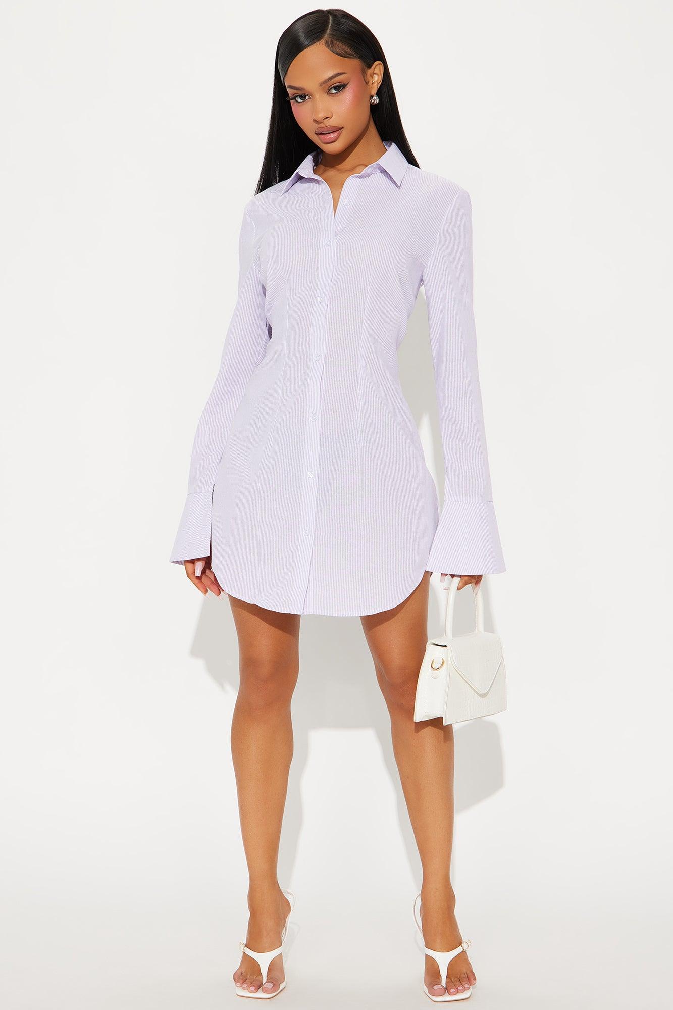 Marlena Pinstripe Shirt Mini Dress - Purple/combo