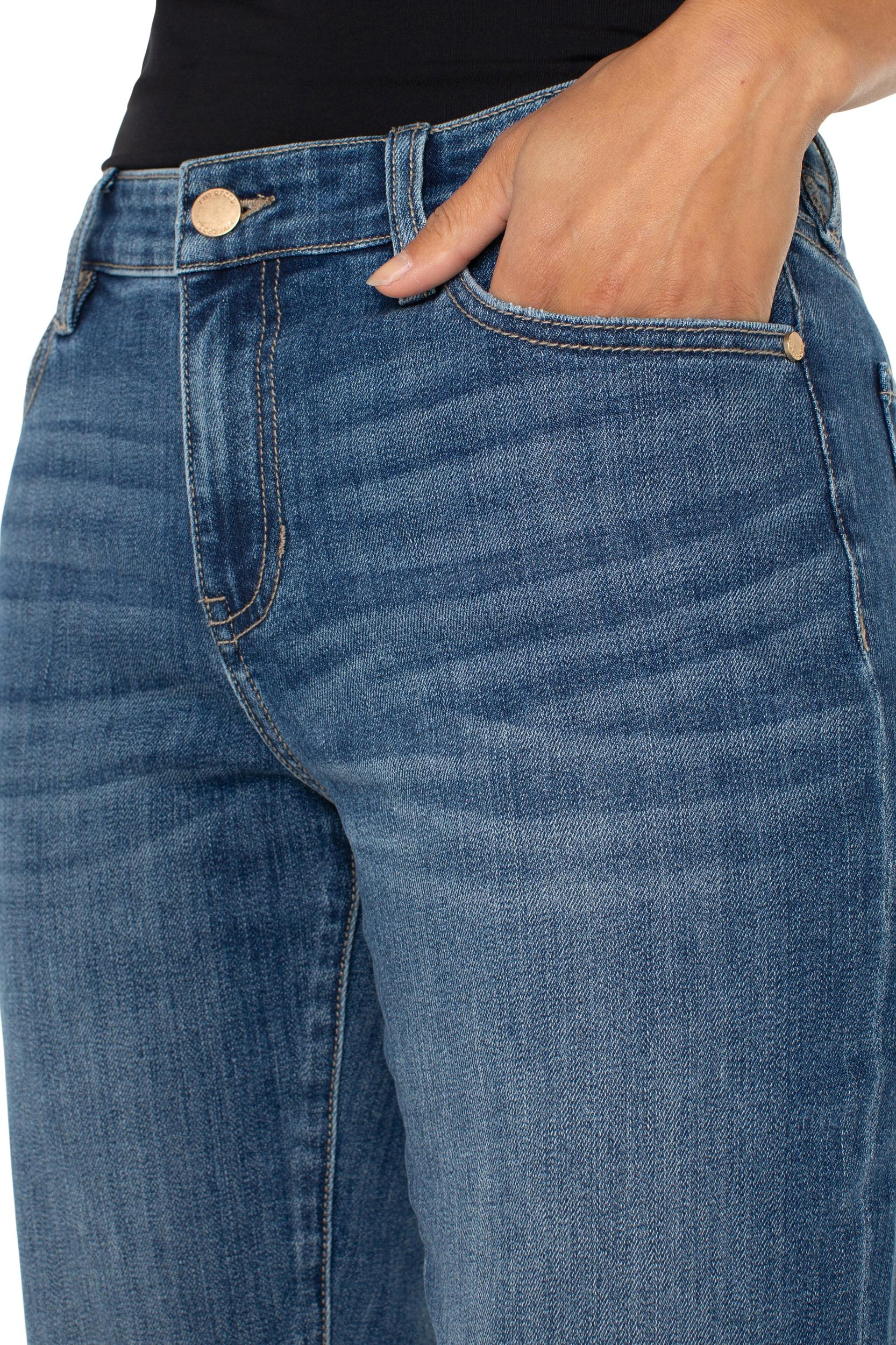 The Marley Girlfriend provides ample space from mid-thigh to its cuffed hem, resulting in a flawless silhouette. Its exceptional stretch and use of innovative laser techniques and minimal resources make it a modern eco-friendly denim choice, embodying the distinct "Liverpool Look."