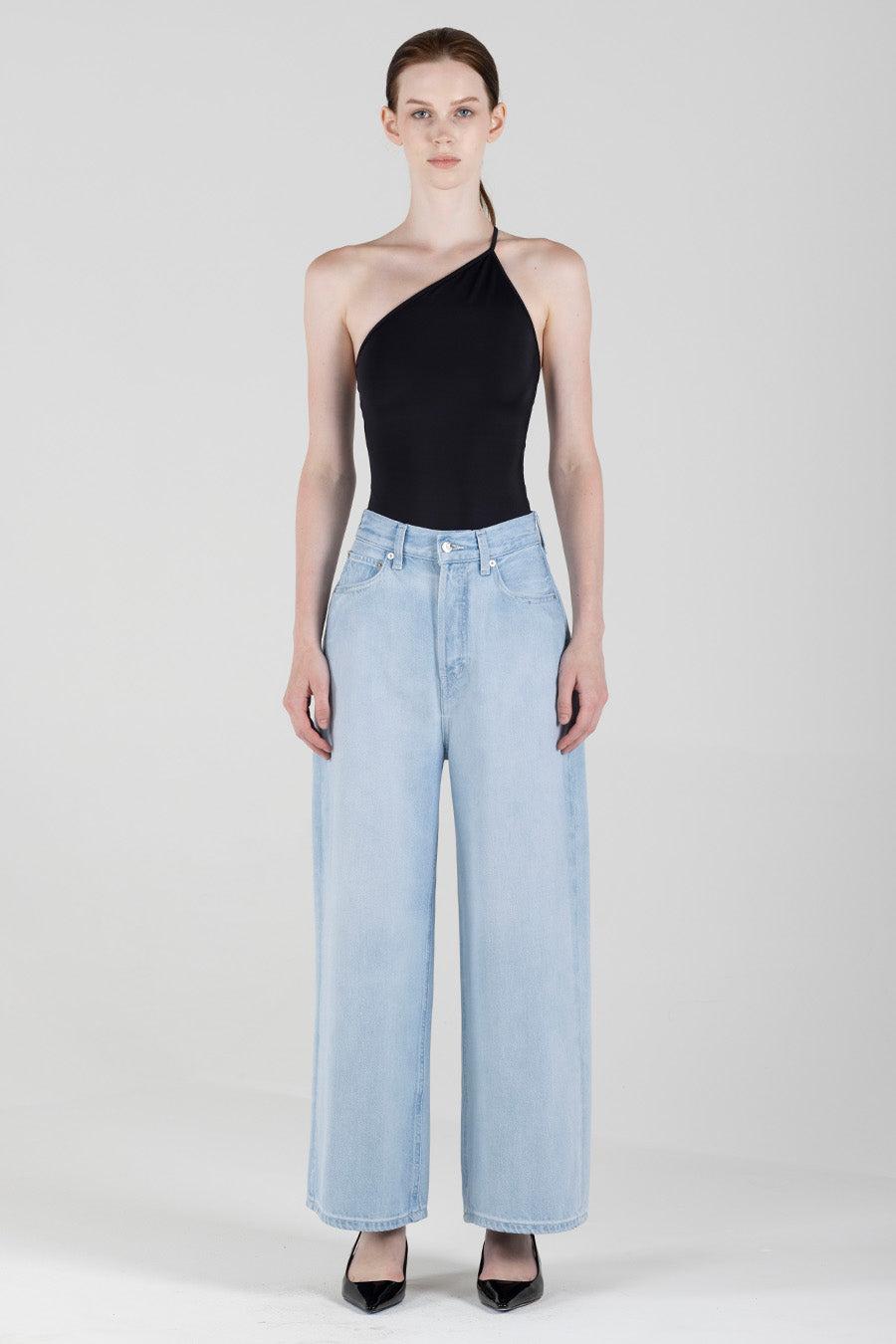 This fit sits clean on the waist for a polished definition and then eases up through the hips and thighs for an extreme baggy statement.