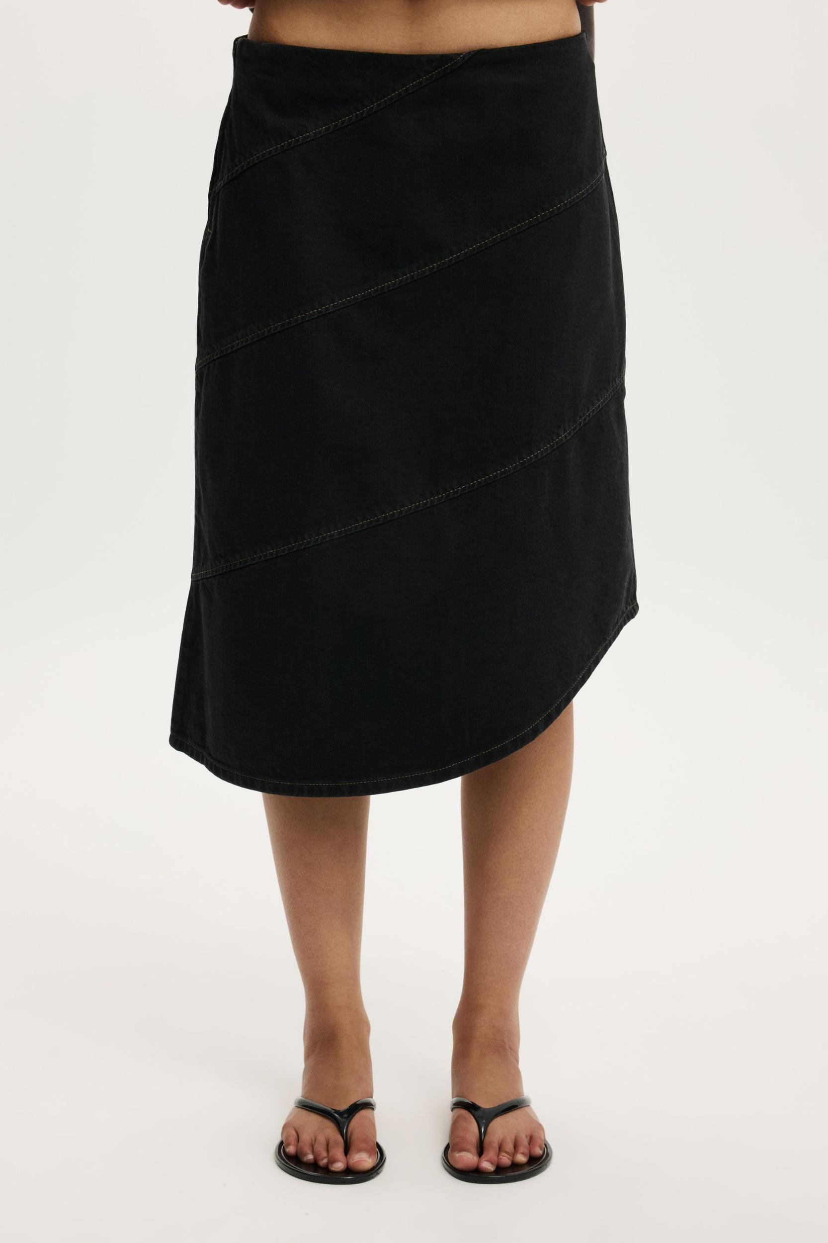 Denim Side-Slit Midi Skirt in Hallandale Wash