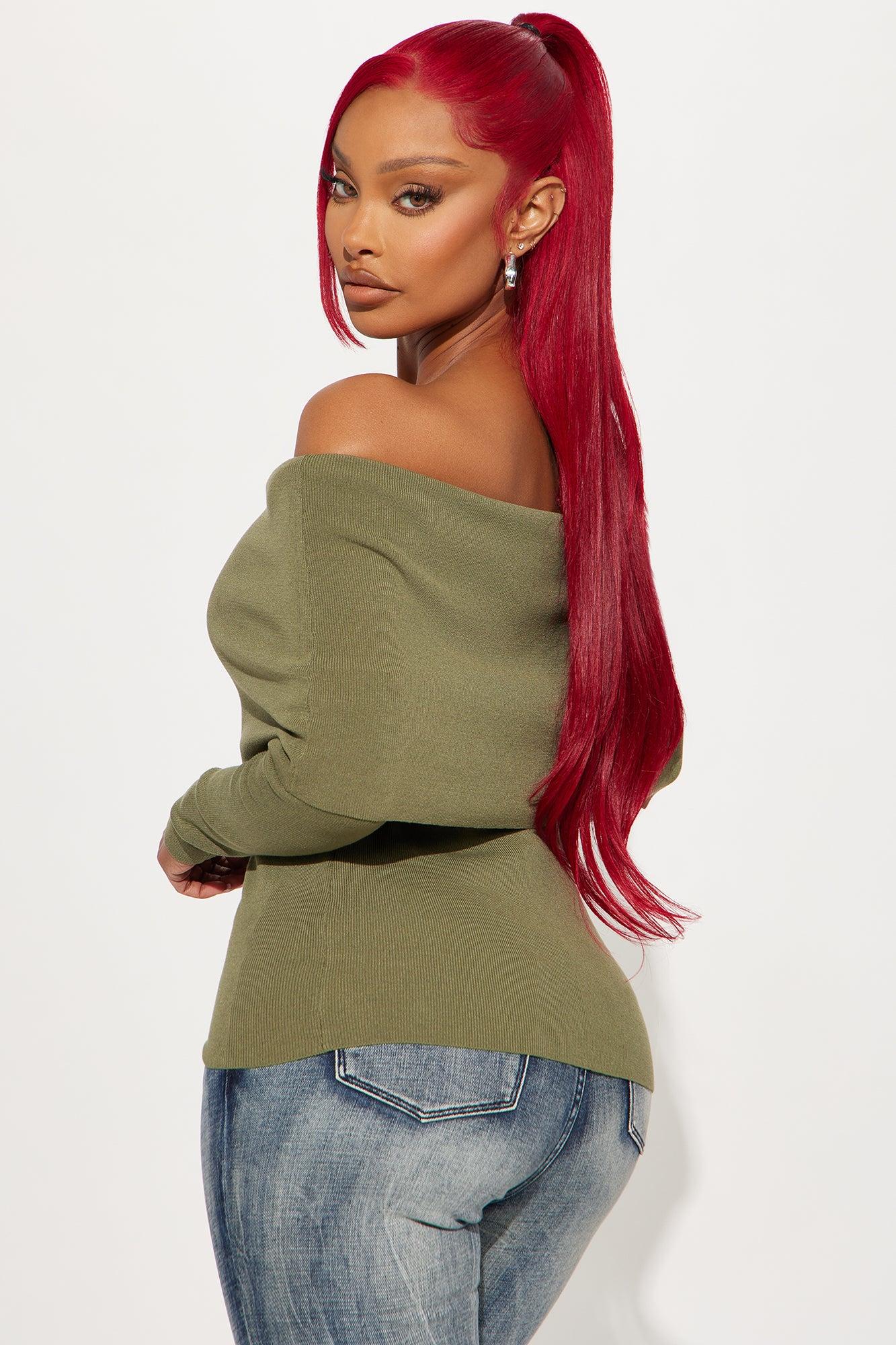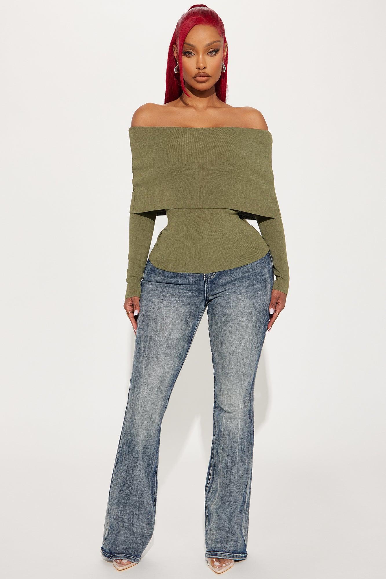 Available In Olive And Yellow. Pullover Sweater Off Shoulder Long Sleeve Foldover Detail 80% Rayon 20% Nylon Imported