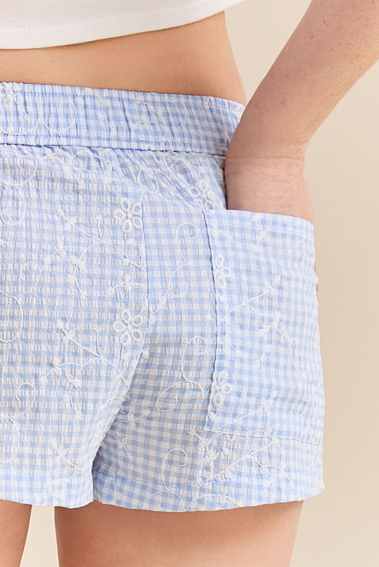 Unwind in style with these gingham embroidered shorts. Crafted for cuteness and comfort. Perfect for a day in or a day out on the lake! These pair perfect with your favorite graphic or tank.