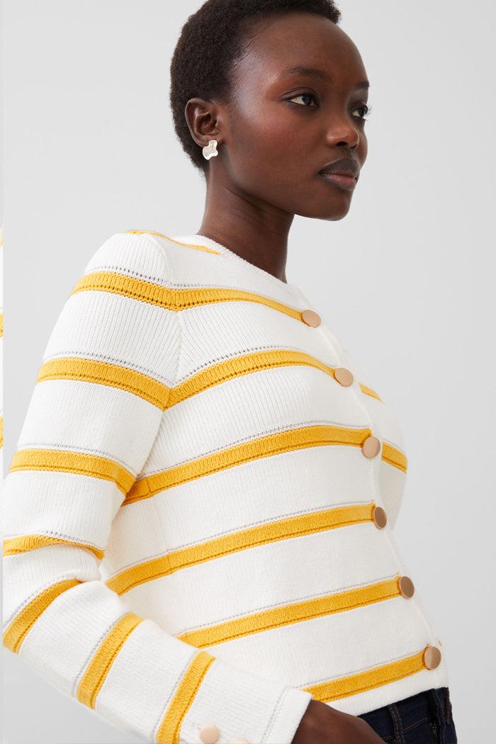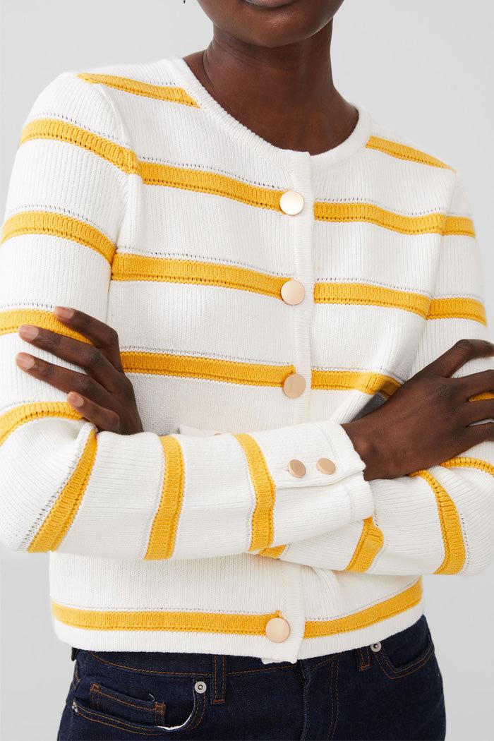 You can never go wrong with classic stripes. Our Marloe Knitted Coatigan was made to keep you chic and cozy, with a timeless monochrome design brought to life in a soft knit, featuring long sleeves, button fastenings and a box fit silhouette.