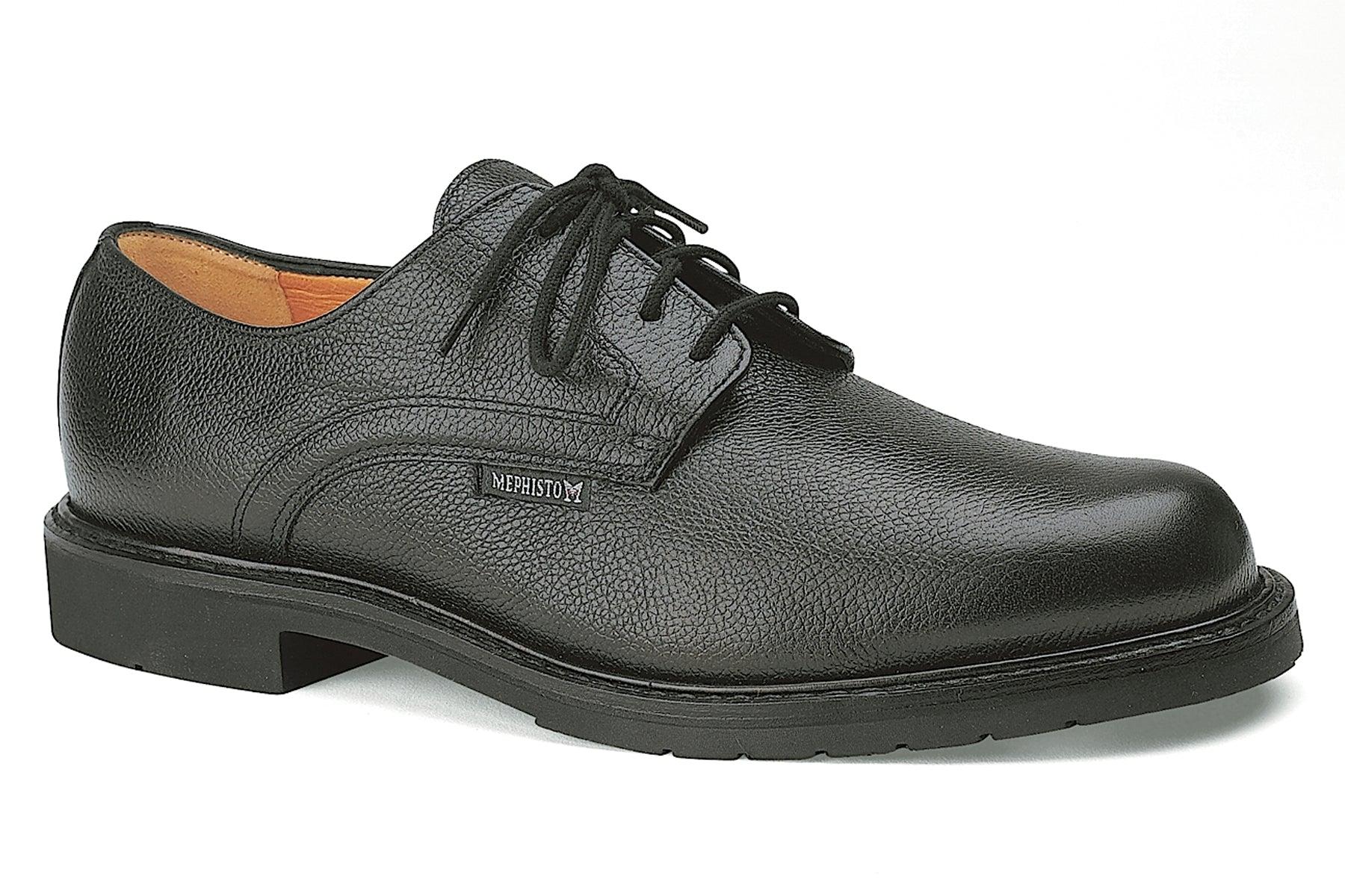 The men's Mephisto Marlon plain toe shoe is style and comfort in an easy to wear business casual. Aniline dyed leather upper,flexible Caoutchouc rubber outsole, and Goodyear welt construction, all makes this a durable and long lasting style. Aniline dyed leather upper. Cushioned footbed. Resoleable outsole. Goodyear Welt construction. 100% Caoutchouc Rubber outsole. MARLON 9100 BLACK