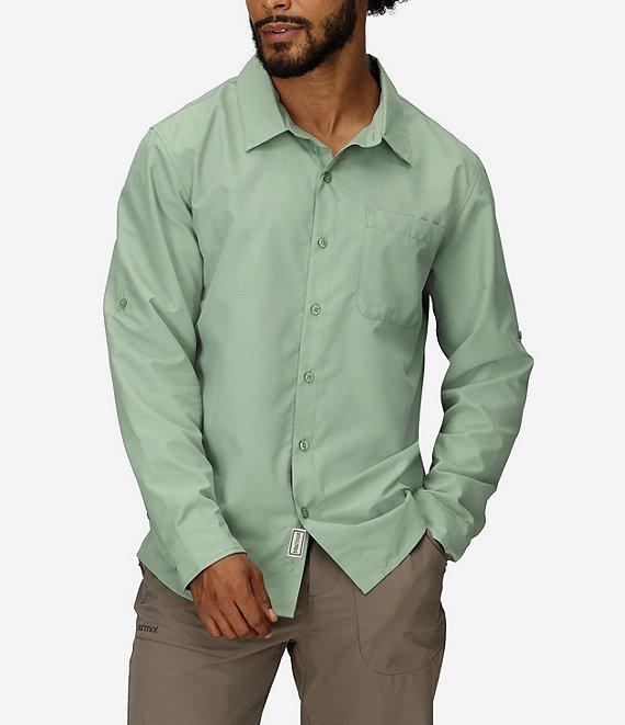 From Marmot, this shirt features: Solid tone Point collar Long, roll-up sleeves Left chest drop-in pocket Button-front closure Breathable Quick-drying UPF 50 sun protection Pre-consumer recycled polyester ripstop Machine wash Imported.