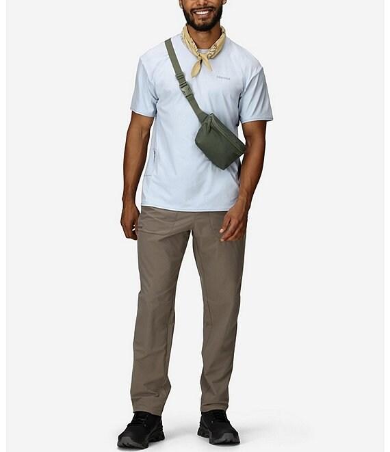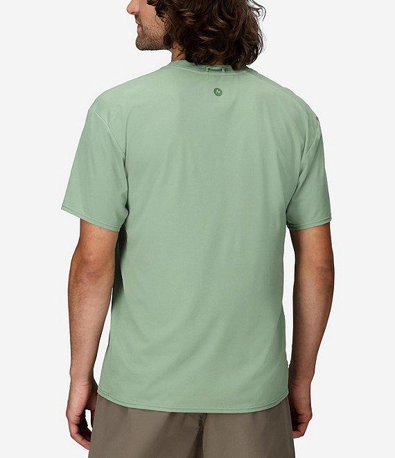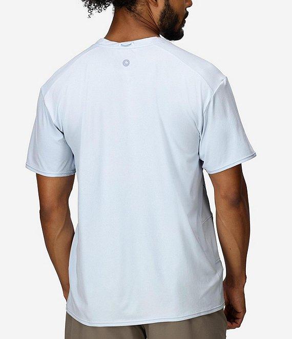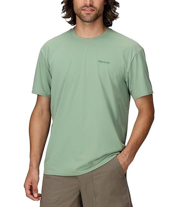 From Marmot, this t-shirt features: Solid tone Crew neckline Short sleeves Logo on the left side of chest Pullover construction Flat-felled seams increase durability Breathable Quick drying UPF 50 sun protection Recycled polyester mesh Machine wash/tumble dry Imported.