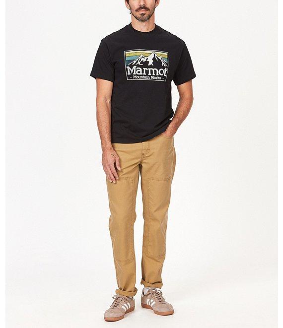 From Marmot, this T-shirt features: Crew neck Short sleeves Rectangular-shaped printed graphic with center Marmot logo on the chest Pullover styling Recycled polyester/cotton jersey Machine wash/tumble dry Imported.