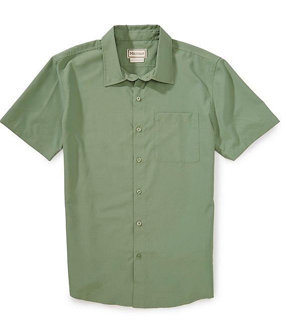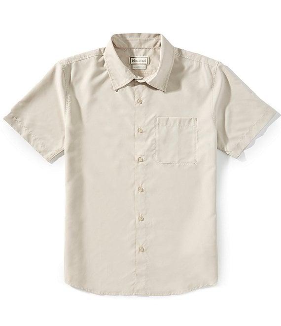 From Marmot, this shirt features:Lightweight woven Point collarShort sleevesLeft chest drop-in chest pocketButton-front closureFlat-felled seams increase durability and comfortShirttail hemQuick dryUPF 50 sun protectionRecycled polyesterMachine wash/tumble dryImported.