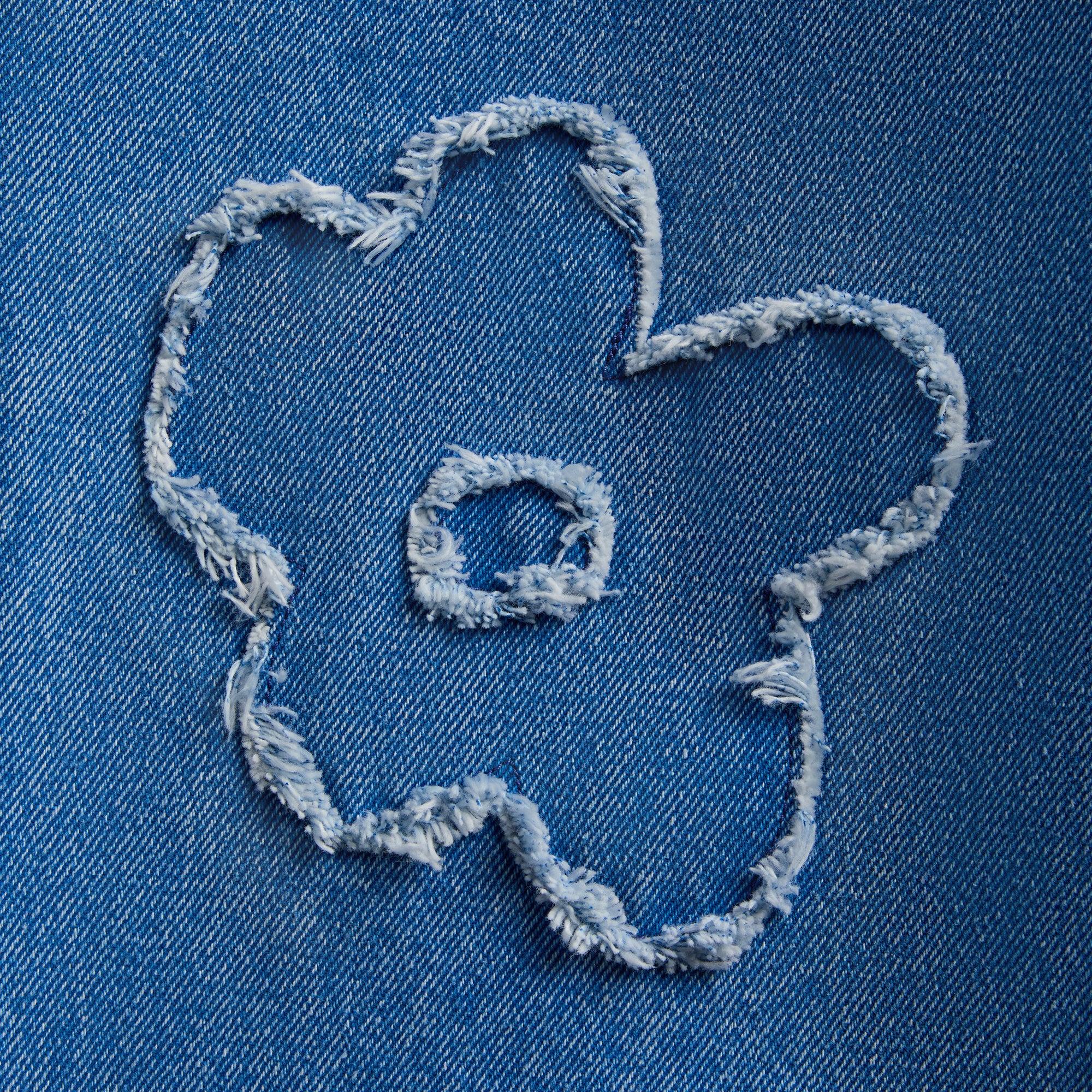 Rigid denim fabric Button closure with zip fly 5-pocket styling Belt loops Raw-cut dillies flower patch on front and back Marni logo patch at back Contrast stitching All-over fading and distressed graphic appliqués Style: mapa34pcb44 Color: Cobalt Material: Fabric: 100% Cotton Woven / Lining: 65% Polyester Woven / 35% Cotton Woven