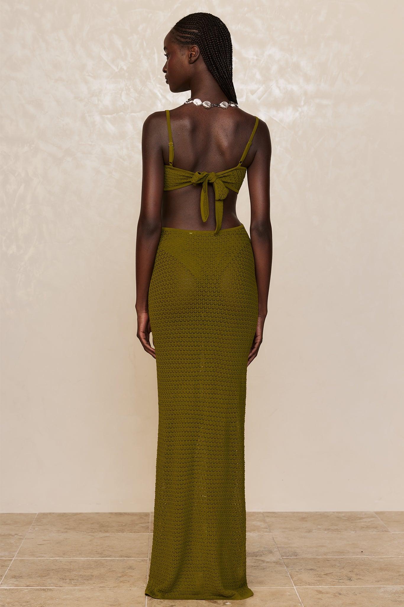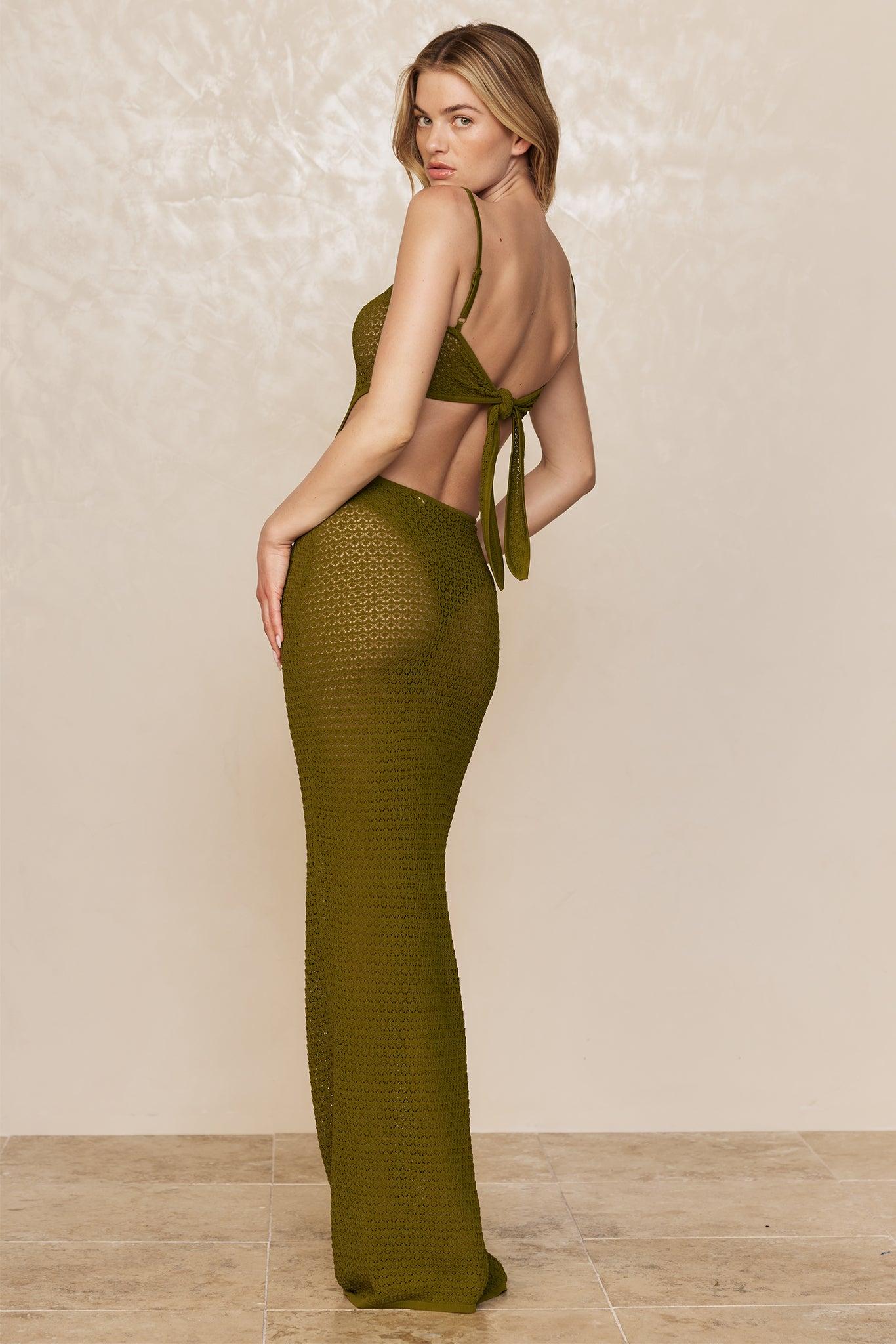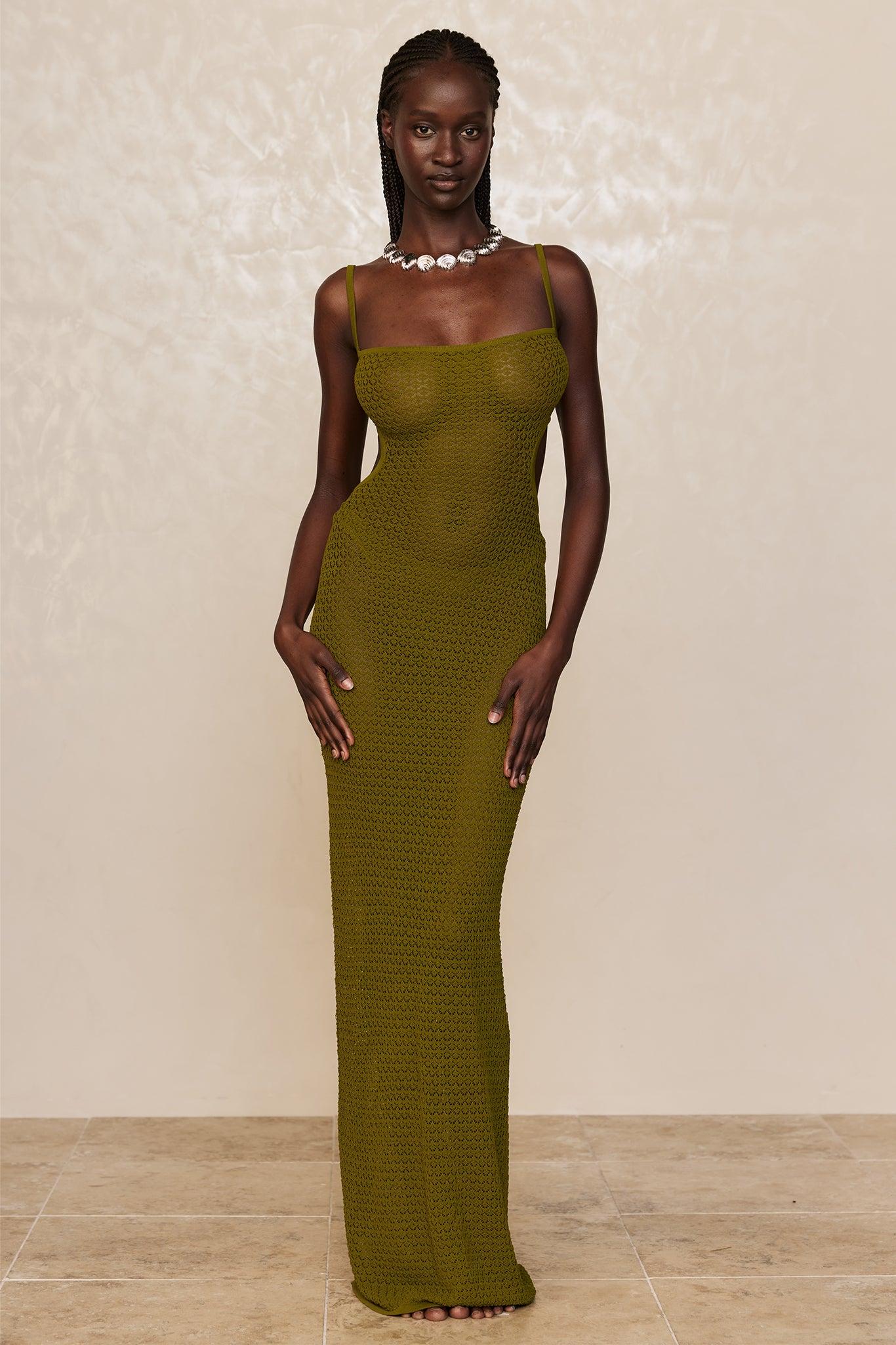 Sophistication for every occasion Unveil effortless elegance with the Marrakesh Dress, where bold design meets timeless allure. Featuring an open cut-out waist and adjustable back straps, a floor-grazing maxi dress and semi-sheer silhouette perfect for sultry escapes.Features:Adjustable back tie and back strapsOpen cut out waistMaxi lengthSemi-sheerCare:Hand wash cold with like colors. Do not bleach. Lay flat to dry indoors. Low iron if needed. Dry clean.This garment is very delicate. In order to minimize snagging, please avoid rough surfaces and be careful when wearing jewelry and bags. Knitwear can stretch when hung so we strongly suggest folding this garment to store, this will ensure your garment holds its designed shape.