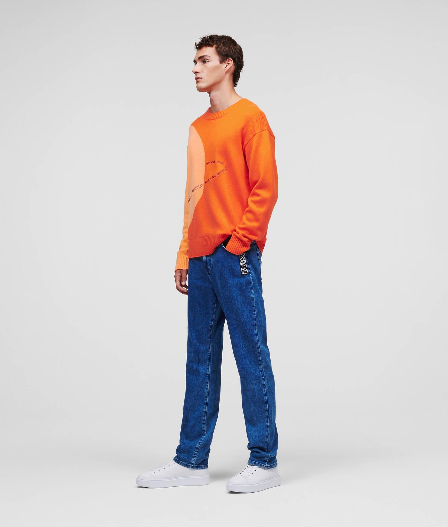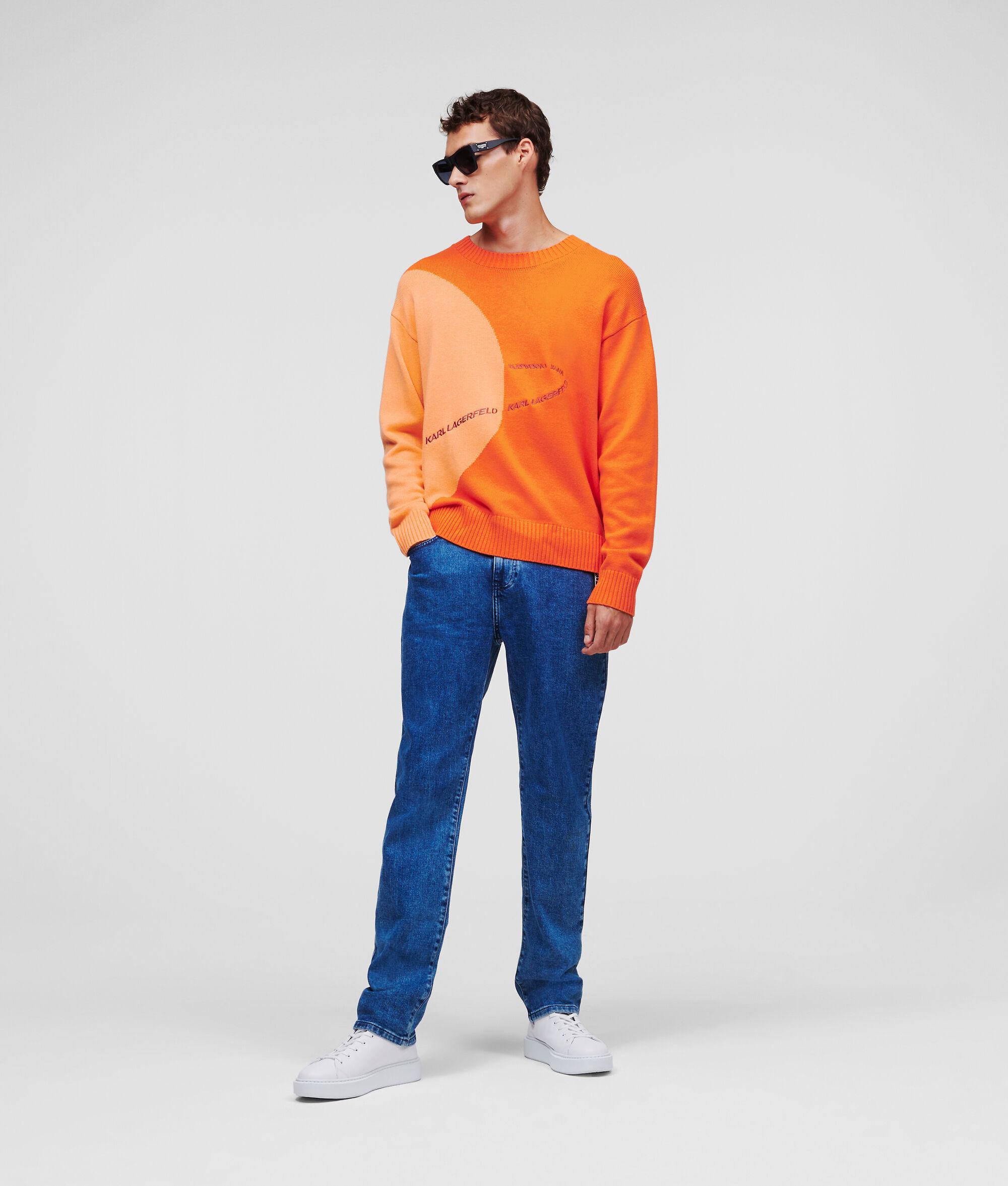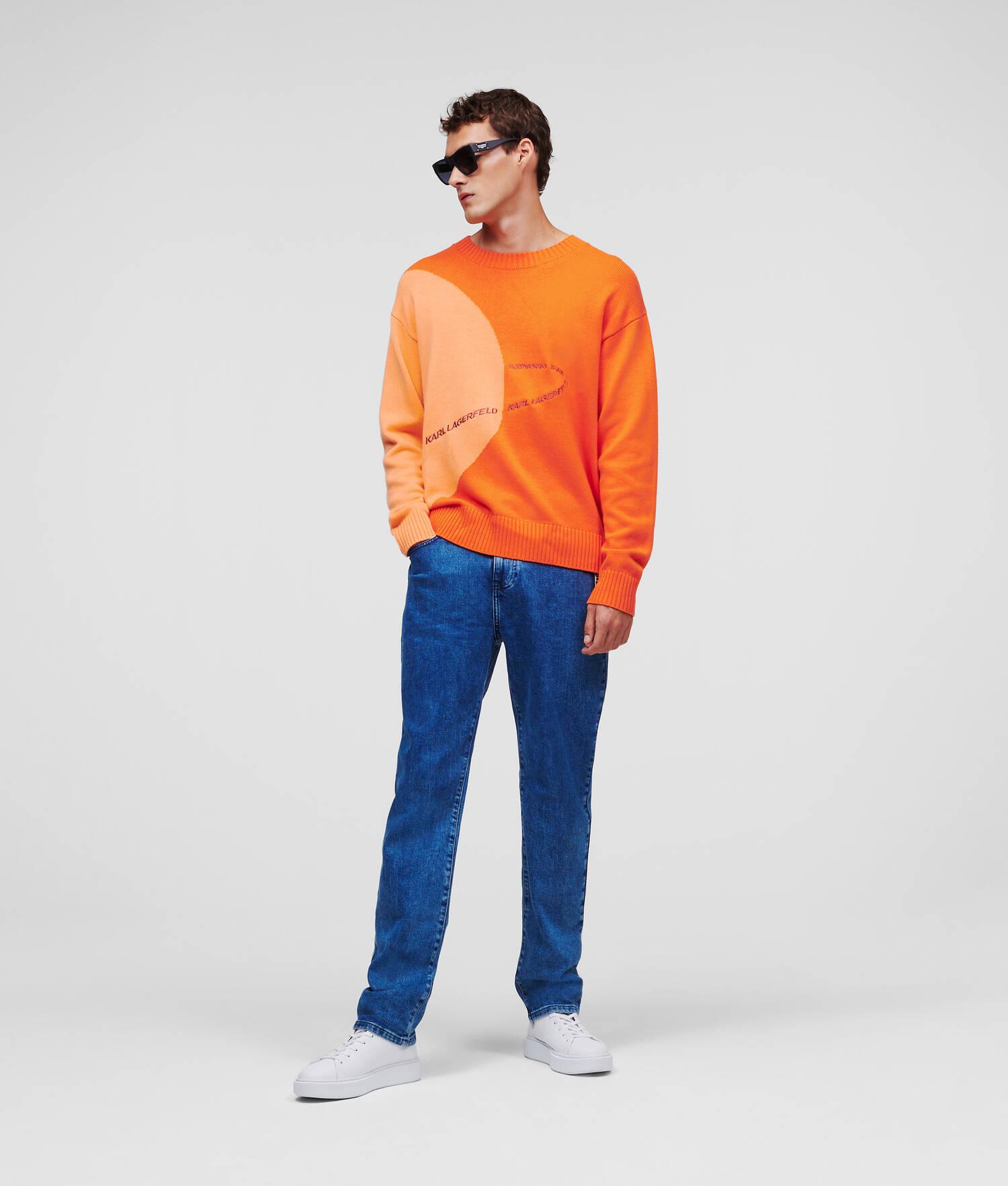 Explore new frontiers of luxury knitwear with KARL. This classic crew-neck sweater features a Mars-inspired intarsia knit design orbited by the unmistakable KARL logo.